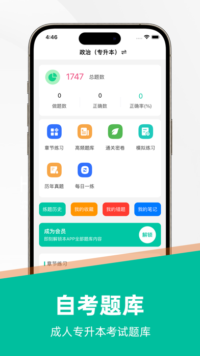 成人专升本高考自考考试题库为全国各类人群提供成人高考专升本成人自考,包括政治,大学语文,英语,艺术概论,高等数学(二),高等数学(一),教育理论教育学,民法,医学综合等科目,最新押题试卷、历年真题,考点难点重点,助您轻松过关。 【特色功能】 【历史真题】最新真题,最近几年考试试题,答案附解析; 【最新押题】押题50套,每道试题附解析; 【高频考点】高频考点+难点,一网打尽; 【模拟试卷】100%模拟考场,智能随机组卷,快速检测,插漏补缺; 【错题库】错题加入到错题库,反复练习; 成人高考、自考、专升本历届考试真题全新上线。 全国各类成人高等学校招生考试专升本政治模拟押题试卷共八套 全国各类成人高等学校招生考试专升本大学语文模拟押题试卷共八套 全国各类成人高等学校招生考试专升本艺术概论模拟押题试卷共八套 全国各类成人高等学校招生考试专升本高等数学(二)共四套 全国各类成人高等学校招生考试专升本教育理论教育学部分模拟押题试共八套 全国各类成人高等学校招生考试专升本民法模拟押题试卷共八套 全国各类成人高等学校招生考试专升本医学综合模拟押题试卷共六套 全国各类成人高等学校招生考试专升本高等数学(一)模拟押题试卷共三套 全国各类成人高等学校招生考试专升本英语全真模拟共三套 2018年成人高等学校招生全国统一考试专升本政治试题 2016年成人高等学校招生全国统一考试专升本政治试题 2015年成人高等学校招生全国统一考试专升本政治试题 2014年成人高等学校招生全国统一考试专升本政治试题 2013年成人高等学校招生全国统一考试专升本政治试题 2012年成人高等学校招生全国统一考试专升本政治试题 2018年成人高等学校招生全国统一考试专升本大学语文 2017年成人高等学校招生全国统一考试专升本大学语文 2016年成人高等学校招生全国统一考试专升本大学语文 2015年成人高等学校招生全国统一考试专升本大学语文 2014年成人高等学校招生全国统一考试专升本大学语文 2013年成人高等学校招生全国统一考试专升本大学语文 2018年成人高等学校招生全国统一考试专升本艺术概论 2017年成人高等学校招生全国统一考试专升本艺术概论 2016年成人高等学校招生全国统一考试专升本艺术概论 2015年成人高等学校招生全国统一考试专升本艺术概论 2014年成人高等学校招生全国统一考试专升本艺术概论 2013年成人高等学校招生全国统一考试专升本艺术概论 2018年成人高等学校招生全国统一考试专升本高等数学(二) 2017年成人高等学校招生全国统一考试专升本高等数学(二) 2016年成人高等校招生全国统一考试专升本高等数学(二) 2015年成人高等学校招生全国统一考试专升本高等数学(二) 2014年成人高等学校招生全国统一考试专升本高等数学(二) 2013年成人高等学校招生全国统一考试专升本高等数学(二) 2018年成人高等学校招生全国统一考试专升本教育理论 2017年成人高等学校招生全国统一考试专升本教育理论 2016年成人高等学校招生全国统一考试专升本教育理论 2015年成人高等学校招生全国统一考试专升本教育理论 2014年成人高等学校招生全国统一考试专升本教育理论 2013年成人高等学校招生全国统一考试专升本教育理论 2018年成人高等学校招生全国统一考试专升本民法 2017年成人高等学校招生全国统一考试专升本民法 2016年成人高等学校招生全国统一考试专升本民法 2015年成人高等学校招生全国统一考试专升本民法 2014年成人高等学校招生全国统一考试专升本民法 2013年成人高等学校招生全国统一考试专升本民法 2012年成人高等学校招生全国统一考试专升本民法 2018年成人高等学校招生全国统一考试专升本医学综合 2017年成人高等学校招生全国统一考试专升本医学综合 2016年成人高等学校招生全国统一考试专升本医学综合 2015年成人高等学校招生全国统一考试专升本医学综合 2014年成人高等学校招生全国统一考试专升本医学综合 2013年成人高等学校招生全国统一考试专升本医学综合 2018年成人高等学校招生全国统一考试专升本高等数学(一) 2017年成人高等学校招生全国统一考试专升本高等数学(一) 2016年成人高等学校招生全国统一考试专升本高等数学(一) 2015年成人高等学校招生全国统一考试专升本高等数学(一) 2018年成人高等学校招生全国统一考试专升本英语 2017年成人高等学校招生全国统一考试专升本英语 2016年成人高等学校招生全国统一考试专升本英语 2015年成人高等学校招生全国统一考试专升本英语 2018年成人高等学校招生全国统一考试高起点 语文 2017年成人高等学校招生全国统一考试高起点 语文 2016年成人高等学校招生全国统一考试高起点 语文 2015年成人高等学校招生全国统一考试高起点 语文 2014年成人高等学校招生全国统一考试高起点 语文 全国各类成人高等学校招生考试高起点语文押题试卷共五套 2018年成人高等学校招生全国统一考试高起点 历史地理 2017年成人高等学校招生全国统一考试高起点 历史地理 2016年成人高等学校招生全国统一考试高起点 历史地理 2015年成人高等学校招生全国统一考试高起点 历史地理 2014年成人高等学校招生全国统一考试高起点 历史地理 全国各类成人高等学校招生考试高起点历史地理押题试卷共六套 2018年成人高等学校招生全国