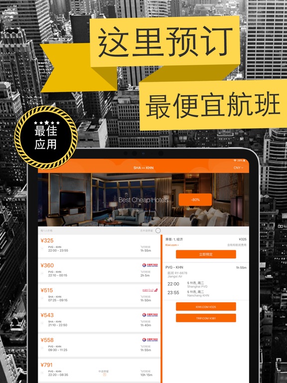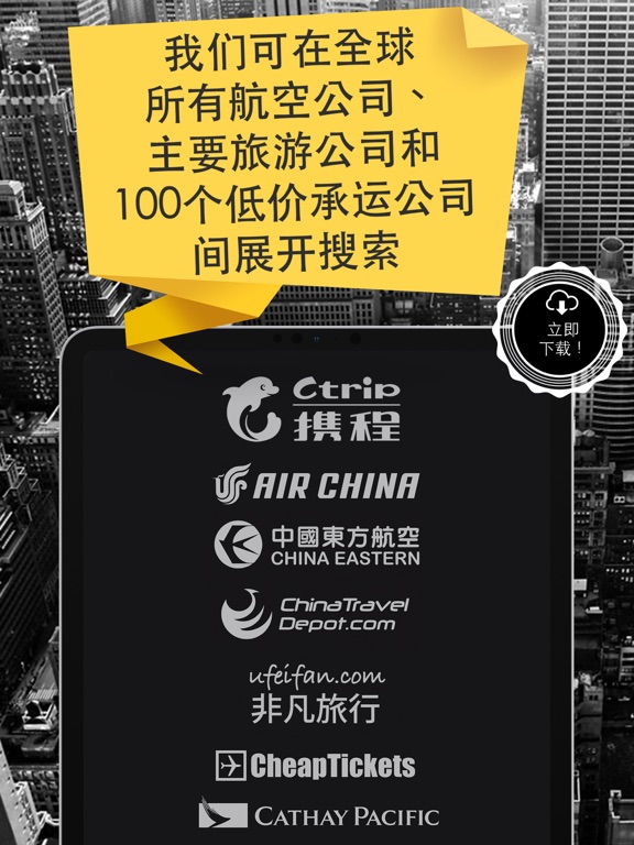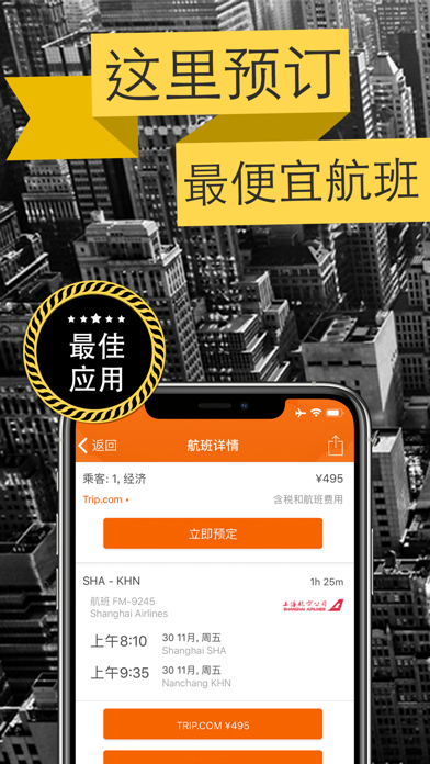 全球777家航空公司向我们发送最后的航班优惠。以有史以来最快的速度找到、比较以及预订最便宜航班--一款美观应用即可实现所有功能。立即下载搜索和预订航班的最佳应用吧。 シ价格最低.、速度最快且品质最好 你需要随时找到廉价航班吗?利用我们的用户友好型应用可快速找到并节省时间和金钱。随时随地搜索和比较777家航空公司,找到最低价格的完美航班。 シ航班搜索和预订的最佳应用 我们屡获殊荣,被评为最佳航班比较应用,美国有线电视新闻网络(CNN)、《纽约时报》、Mashable、TIME和《每日电讯报》的精英人士高度推荐。一键式查看哪些机票最便宜、最快捷或最优惠。精挑细选后准备周游世界,这是您唯一要做的事! シ我们不收取任何费用 我们可在主要航线、100个旅游网站和低价承运人之间展开搜索,找到最佳机票并免费将您重定向至销售公司。完全免费!我们是独立开发商,致力于向所有游客提供价格透明化服务。 シ100%安全预订 シ我们成为预订廉价机票的第一应用,其原因如下: – 直接从用户设备预订 – 美观易用-找到航班从此变得倍加轻松,趣味横生。 – 没准备好预订?保存结果,以备不时之需或通过邮件或短信分享 – 为你的旅途找到最廉价的飞行日期和机场! – 按站点、起飞或到达时间、航线、机场、机票类型和旅行场地快速轻松地筛选机票 – 价格日历通过互动日历的形式在不同的日期显示平均价格,帮您找到预算的最佳费用 由于我们孜孜不倦地开发新品,我们终于可为您找到最佳机票价格 本应用屡获殊荣,已被美国有线电视新闻网络(CNN)、《纽约时报》、Mashable、TIME和《每日电讯报》评为精品应用 立即下载航班搜索和预订的最佳应用!本应用属于用户友好型应用,快捷且免费酬宾奖励!15个最佳旅行秘诀