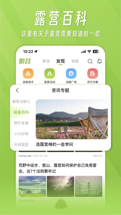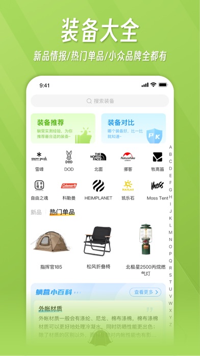 【查找露营地】 躺营APP收录了全国各地2000+营地,带有各营地的详细信息以及联系方式,一键直达预定;有露营行家专业测评打卡,让你了解营地真实情况。闲暇时光,总能选到一个适合你的好地方~ 【装备助手】 装备推荐助手,输入个性化需求,获取适合你的装备; 一键PK对比不同产品,帮助你高效做出装备选择~ 【露营百科】 躺营为你提供丰富专业的露营百科内容, 新手露营的各种指南:新手如何开始露营,要做哪些准备工作?露营有哪些注意事项? 如何选择合适的装备:根据季节以及场景,选择合适的装备 全球各地的露营玩法:全球各地的露营美景、露营玩法、露营美食 各大品牌的产品测评:国内外各种价位的品牌和产品的测评和推荐,帮你掌握露营新潮流和新趋势。 【参加活动】 躺营收录了丰富、新鲜有趣的露营活动。亲子露营,野外学习,咖啡节、露天电影等各种跨界创新露营活动等着你,让你可以快速找到组织,体验不同的露营玩法~ 【畅聊露营】 在躺营的社区,聚集了同样热爱露营的小伙伴。在这里,你可以通过文字、照片或者视频,随时随地分享你的露营故事,和伙伴们畅聊露营,共享露营时光。1. 新增游客模式