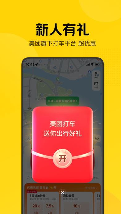 美团打车业务源自美团用户需求驱动,希望能给行业带来创新动力,在本地吃喝玩乐消费场景协同的基础上 ,为美团用户提供一站式“吃喝玩乐行全都有”的服务体验。目前开通服务城市有北京、上海、成都、广州、深圳、杭州、南京、郑州、合肥、西安、太原、长沙、武汉、沈阳、厦门等100多个城市。 【打车超优惠】更多低价高品质车型,叫车更快!随机立减等你来! 【吃喝玩乐行】通勤出行,吃喝玩乐,旅游出差,美团打车帮你一站到底! 【安全有保障】高标准的司机认证,行程安全守护,为您出行保驾护航! 【服务更贴心】以客户为中心,7X24小时智能、人工客服双渠道,为您提供专业、高效服务保障! 【出行效率高】一键呼叫多种车型,分秒应答,快速接驾,出行更高效! 【开票更省心】支持纸质发票和电子发票,轻松选行程一键快速开票! 【沟通捷快达】支持即时通讯和受保护的虚拟电话,与司机联系更便捷!出行效率高】一键呼叫多种车型,叫车更快! 【打车超优惠】 更多低价高品质车型,随机立减等你来!