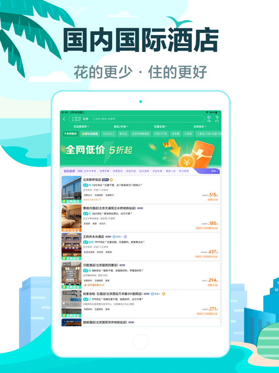 去哪儿旅行Pro—总有你要的低价! 去哪儿旅行APP可实时搜索约9000家旅游代理商网站,搜索范围覆盖全球范围内超过68万条国内及国际航线,超过580家航空公司,其中,与国内外超过100家航空公司进行了深度合作。平台的搜索范围还覆盖了全球范围内超过约147万家酒店、120万余条度假线路、1万个旅游景点。 通过移动客户端的全平台覆盖,去哪儿旅行提供吃住行游购娱一站式解决方案,随时随地为旅行者提供国内外机票、酒店、度假、门票、租车、接送机、火车票、汽车票和团购等旅行信息的深度搜索和预订。超过80%的低价占比和全面丰富的旅行产品,帮助旅行者找到性价比高的产品和优质的信息,聪明地安排旅行。 主要功能: 【全站搜索】 国庆之后错峰去哪儿玩?温泉、滑雪哪里耍?圣诞、跨年哪里不冷还便宜?全站搜索整合全网旅游信息,用先进智能的搜索技术,全面精准满足旅游过程中不同场景的需求。旅行地、主题游玩、住宿、景点、交通出行,一次输入查询,快捷得到所需内容。 【机票】 去哪儿网为消费者提供海量优质供应商及各大航空公司机票,逐一即时报价近68万条国内国际航线信息, 随时随地预订低至一折机票。 特价机票: 查询固定出发地各航线特价机票, 一目了然。去哪儿旅行提供低价的机票, 方便消费者选择合适出行的目的地。 往返同屏选: 全球首创国内机票往返机票同屏搜索,往返时间、价格一页可看,往返不再来回退一步选择,告别记不清去程起飞时间、航班号的历史。 低价机票: 只要设置出发到达城市、预期出发时间段和关注折扣,即可告别天天抱着手机刷特价机票的时代。当去哪儿旅行平台上出现符合设定需求的特价机票时,系统会直接通知您,特价机票再也飞不出你的掌心。 航班动态: 查询航班起飞时间和延误状态, 随时掌握航班实时动态,方便安排往返机场时间。 航班选座: 根据自己的喜好自助选择座位,免除机场值机柜台排队等待,轻松享受自助旅行生活。 【酒店】 去哪儿网可搜索全球范围内超过约147万家酒店:包含特价酒店、客栈、民宿、经济酒店、宾馆、钟点房等诸多选择。使用去哪儿旅行作为订酒店平台,是您出差、亲子游、转机、旅行酒店预订的绝佳选择。您可从距离、星级和价格多维度细化筛选。还可一键切换地图模式,查询酒店周边景点娱乐、餐饮、机场车站和路线再度优化入住方案 。 【车车】 去哪儿车车已经成为超受欢迎的一站式出行平台,支持国内国际接送机、接送站、接送景区、城市交通、线路用车、海外自由行、日租包车、国内外自驾租车等多种用车服务。业务覆盖国内160个城市,国际86个城市,并与上百家供应商建立合作关系。去哪儿专车,专业的司机提供优质的服务,便宜实惠,让用户享受到真正愉悦的出行。 接送机: 提供便捷、准时、高性价比的接送机服务,覆盖国内所有大中城市100多个机场以及国际86个城市,多种车型可选,专业司机接驾,接机免费等待,更有智能派单系统,全力保障车辆服务。 【火车票】 全球·火车票预订: 1.提供全国所有火车票线路预订,提供智慧出行方案:可键切换机票、火车、汽车,更有中转、多买几站、上车补票、同车换座等多种组合线路推荐,让你交通出行更高效。同时新人还享受5元立减优惠、30元抢票加速等福利。 2.为学生用户提供平台VIP速抢票、退票免手续费专属福利,25元代金券认证即得。 3.春运、节假日出行好帮手,高峰期不耽误买到票。春运回家开售提醒,万人助你回家,公益送你回家,预约返程票,一路暖心。 黑科技 平台鼓励先买票再付票钱,成功率极高,更有独家三大黑科技: 1.支持在去哪儿下单,携程、智行等平台一起帮买票 2.开售前预约,放票即秒,越早预订越早抢到票,下铺几率高; 3.更有海量用户IP互助帮抢,抢票成功率更高。 4.平台智能暖心系列,自动帮你升级靠窗、过道、下铺等好坐席。 【汽车票】 支持国内3000多个车站20多万条客运线路在线预订,可提前60天预约购票,大部分线路支持在线退票,部分城市支持预订儿童票、携童票特殊票种。支持国际7000多条线路,覆盖东南亚全境,欧洲热门国家,全网超低价。提供景区直达及机场接送服务,线路覆盖全国各大景区及机场。预订便捷,出票快速,服务优质。 【船票】 国内的船票线上预订平台,可在线预订国内船票,包括渤海湾、粤港澳、舟山群岛、琼州海峡、长江三峡等区域。 【门票】 专业的景区门票预订平台,覆盖国内1万多个景点和50多个国家和地区近千个海外景点,让您随时随地畅游热门景点。 【度假】 作为消费者欢迎、价格优惠的度假线路搜索平台,去哪儿网可搜索120余万条度假线路、近万个旅游景点。是亲子游、自由行、周边游、周末游、出境游、跟团游、自驾游、家庭出游客人的绝佳选择。除旅游线路外,WiFi、签证、甚至旅行攻略,也可从去哪儿网获得。即刻开始您的移动旅行生活。 【操作便捷】 全部页面适用的右滑返回功能和拇指半径内的90%操作点击位置设计,去哪儿旅行客户端用户使用大屏幕手机也能单手快捷操作;机票、酒店和团购等产品入口与订单、收藏和消息等常用个人信息独立导航,简洁界面让新用户无需指导也能迅速上手。智能语音搜索,通过在移动旅游垂直领域对搜索词识别进行度假创新,真正实现说走就走的移动旅行生活。 【行业领先】 去哪儿网移动客户