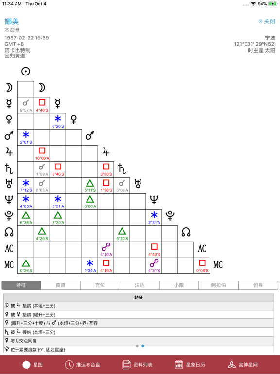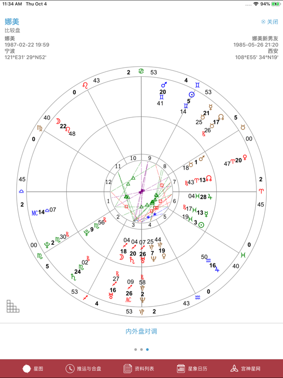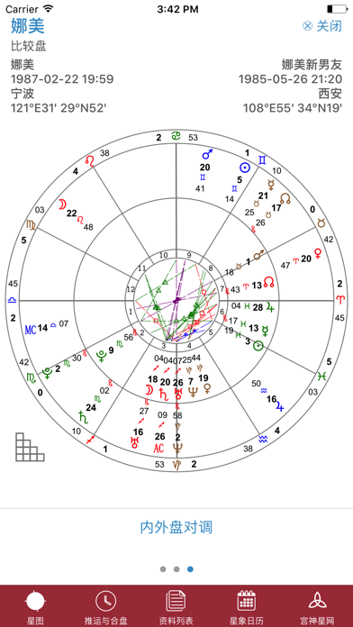 宫神星 – 职业占星师御用神器,宫神星网官方App 宫神星网作为最专业的古典占星网站,一直深受职业占星师与占星爱好者的喜爱。应广大用户的强烈要求,特此推出官方App,将网页的体验搬到移动平台上,并针对国内用户的网络情境量身打造。使用界面简洁专业,多种排盘功能齐全,并且支持网站端与手机端同步共享数据。 无论您是专业的占星老师或是占星的初学者,宫神星App都是您口袋里不可或缺的方便工具。 - 特色 * 离线排盘 * 宫神星网星盘资料同步 * 采用苹果内建地图 * 国内与世界城市经纬度查询 * 同时开启多个星盘,左右平滑切换 - 排盘功能 * 本命盘 * 流年星 (Transit) * 太阳弧 (Solar Arc) * 次限盘 * 次限盘对本命 * 三限盘 * 三限盘对本命 * 太阳返照 * 月亮返照 * 比较盘 (Synastry) * 组合盘 (Composition) - App 内购买七政四余排盘功能 * 七政四余盘 * 七政四余推运盘 - 显示 * 单轮图 * 双轮图 * 相位表 * 比较盘支持内外盘交换 * 推运时间步进调整 * 本命盘表格:古典特征、黄道状态、宫位、法达星限、小限、阿拉伯点、恒星 - 计算 * 支持常用的普拉西德、阿卡比特、等宫制等12种宫位制 * 容许度计算可选择古典星光或是现代相位 * 容许度可调整 * 法达星限支持波那提与Abu Ma'shar制 * 星体计算基于瑞士星历表 - 星盘资料 * 可登入宫神星网帐号后,与网站端星盘资料同步 * 可建立自定义分类文件夹、方便管理记录每张星盘 * 在资料列表向左滑动即可移动丶编辑丶删除 * 地理资料可由地图查询、或是直接输入国外地名查询Hotfix: 修正搜寻列表无法左滑编辑的问题