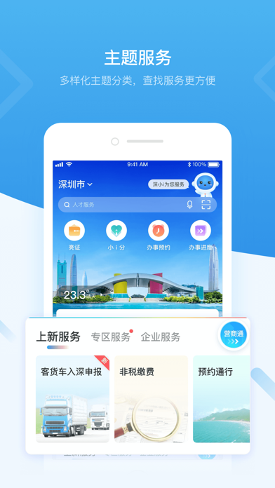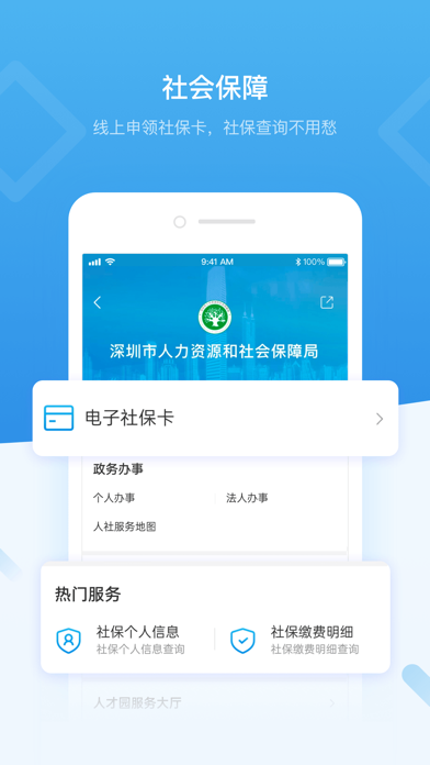 “i深圳”—深圳市统一政务服务APP,是深圳市政府打造的全市统一移动端政府服务平台,旨在为深圳市民和企业提供全方位政务和生活服务。目前已接入3个中直单位、43个市级单位、11个区级单位和19个国企单位共8000多项服务以及接入身份证、户口簿、居住证、结婚证等407类电子证照证明。 【政务办事】 1. 办事咨询:提供语音机器人智能问答服务。在线咨询办事问题。 2. 办事指南:提供办事指南查阅服务。办事前了解办事条件、所需材料、办件结果以及办事流程等信息。 3. 办事预约:提供政务办事在线预约服务。支持全市行政服务大厅办事预约,并提供在线取号、排队查询、排队叫号等服务。 4. 网上办事:提供政务事项在线申办服务。线上填写表单,提交材料完成业务办理。 5. 进度查询:提供办事进度查询服务。查看业务办理状态并跟踪流转过程。 6. 办事评价:提供办事评价服务。可针对业务受理过程和办理结果进行打分评价,支持追加评价。 【便民服务】 1. 社会保障:社保查询、社保缴纳、公积金查询、安居房轮候结果查询、专属医疗险等服务。 2. 医疗健康:预约挂号、家庭医生、心理健康、医保业务、附近医院查询等服务。 3. 交通出行:乘车码、实时公交、地铁线路图、车管服务、摇号/竞价、交通违法处理等服务。 4. 警务安全:一键报警、警务地图、风雨实况、灾害预警、天气预警铃等服务。 5. 教育科普:中考查分、学位查询、教育新闻、招生政策、安全微视频、线上科普馆等服务。 6. 生活缴费:缴费网点、燃气报数、气价查询、供电服务、天威视讯、非税缴费等服务。 7. 电子证明:电子证照、临时入住凭证、临时乘机证明、无犯罪记录证明、社保参保证明等。 8. 游玩预约:预约通行、中英街预约、大梅沙预约、科普教育预约、体育场馆预约等服务。 9. 文体资讯:活动查询、旅游资讯、美食介绍、鹏城景点介绍、旅游线路介绍、演出展览信息概览等服务。 10. 其他便民服务:智能客服、天气查询、航空气象、不动产查询、不动产登记预约、智慧殡葬等服务。 【联系我们】 PC官网: http://isz-openszgovcn/iszhome/# 微信订阅号: i shenzhen(i深圳)优化了部分功能使用体验及性能