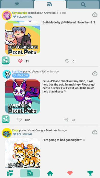 Pixel Petz是一个设计和交易虚拟宠物的社群。您所设计的宠物会栩栩如生地与你互动,您亦能与来自世界各地的创作人交流! 加入Pixel Petz: •使用容易上手的工具,设计独一无二的宠物。 •分享和发布你的宠物照片和贴文。 •留言和赞好你喜欢的社群艺术家和宠物达人。 •参加宠物明星赛提升您宠物的知名度,打造属于你的明星宠物。 •购买,卖出和交易宠物,收集一套你最爱的宠物系列!0.4.20 -Q 塔错误修复 -年龄验证