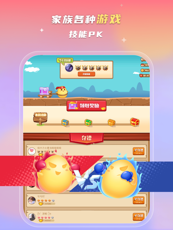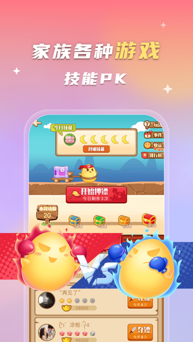 专为年轻人打造的游戏化语音社交APP,在这里你不仅可以找到志同道合的小伙伴相互陪伴,还可以体验丰富多彩的游戏玩法收获乐趣。 参与家族战PK技能,捍卫荣誉;科举答题赢取称号,秀出才智;开启派对多人连麦,嗨翻全场……多种玩法总有一款得你所爱。 这种边玩边聊的社交方式时尚而潮流,它拉近了声音的距离,让交友更加轻松,让孤单彻底终结,蛋蛋部落也因此深受广大年轻人的支持和喜爱。 功能介绍: - 找关系处CP:婚姻、师徒、结拜和跟班,处关系拿专属称号,轻松建立属于自己的社交圈。 - 语音畅聊:自建派对房、热门家族房、娱乐活动房,各种房间各种主题随便聊。 - 家族玩法:押镖夺镖、科举答题、家族对战,团结一心捍卫家族荣耀,完成日常任务还能领取海量游戏道具。 - 技能PK:一脚踢飞不爽的人,么么亲吻最爱的人,头顶猪头胡言乱语……六种技能效果各一,升级还能解锁特殊效果哦。 - 身份象征:独特的称号勋章,精致的礼物道具,豪华的进场座驾,炫丽的麦位头饰,灵动的主页特效……拥有它们,你就是蛋蛋最靓的仔。 如果你热爱游戏,却又孤单没有人陪, 来蛋蛋部落,一起体验不一样的游戏社交!修复bug,提升用户体验