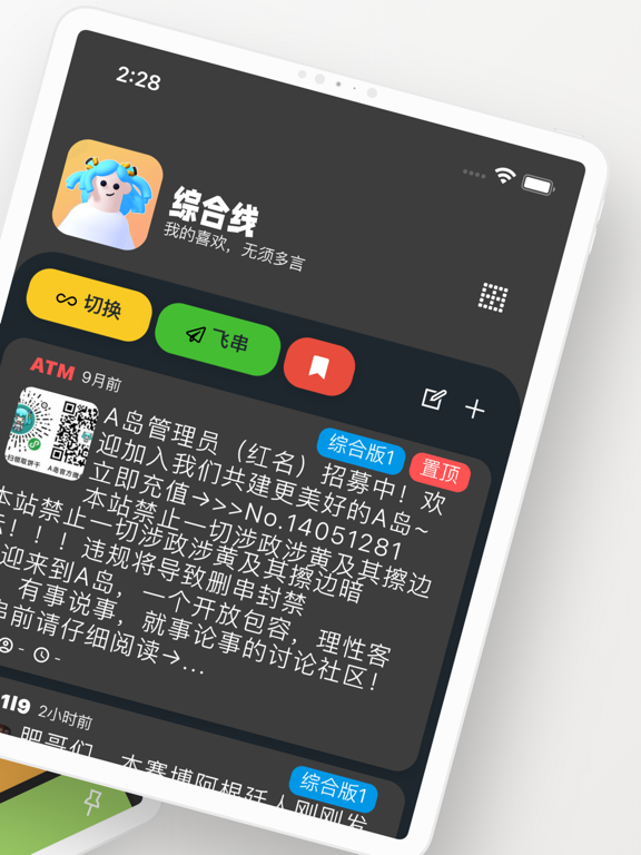 已支持饼干功能~ App特色功能: (1)无需登录,支持本地收藏,收藏追踪喜欢的串 (2)飞串:快速直达喜欢的串 (3)饼干屏蔽:一键屏蔽不喜欢的饼干,再也不用看TA的发言 (4)引用串直接显示,再也不用找半天啦 更新内容: 1.支持暗黑主题模式 2.支持个性化设置页面 3.新增本地「数据统计」 4.串中串默认缩短,避免过长 5.支持串内跳页 6.从收藏夹打开串默认跳转收藏的页 7.修复若干你可能都没发现的BUG 首发版本暂不支持饼干相关功能,如回复、订阅等1.翻页自动过滤重复串 2.支持个性化字体设置 3.新增饼干相关功能 4.支持突出显示串尾及卡顿优化 5.优化板块列表页面 6.修复若干你可能都没发现的BUG