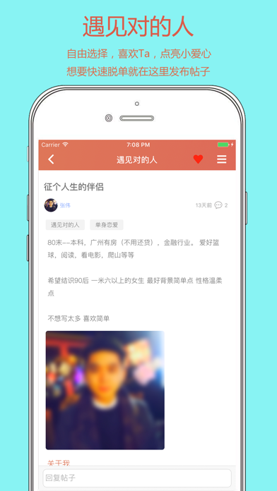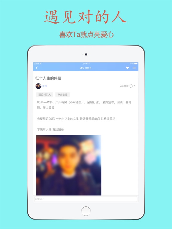 《TA》自上线以来,已成功配对了几十万对!他们从最开始的相遇,再慢慢相恋。 很多人找不到对象的真正原因是缺乏认识异性的途径,《TA》正是一条认识异性的好途径。 《TA》会根据年龄、学历、兴趣爱好等维度进行配对,把最合适两人配成一对,再进行一对一聊天。 每个APP都有一个定位,《TA》的定位是【靠谱】。如果你想找到男朋友、女朋友、结婚对象,那欢迎你。 -----联系我们----- 如在使用过程中遇到任何问题,请联系我们: - 在线帮助:在TA中选择“我” -> “意见反馈” - 邮件服务:shiyixin0420@163.com(如果是帐号问题,请在邮件中注明出问题的帐号) -----连续订阅说明----- - TA提供按月、按季、按年三种周期订阅。 - 费用将在确认购买时通过你的 iTunes 账号收取。 - 根据App Store自动续约规则,会员会在订阅期结束前24小时内自动续约(含免费试用),你可以在会员订阅期结束前至少24小时取消订阅。 - 通过账号设置 - 管理订阅来取消订阅。 - 条款与隐私政策:https://www.bokuigo.cn/misterrightPrivacyPolicy/index.jspBug fix