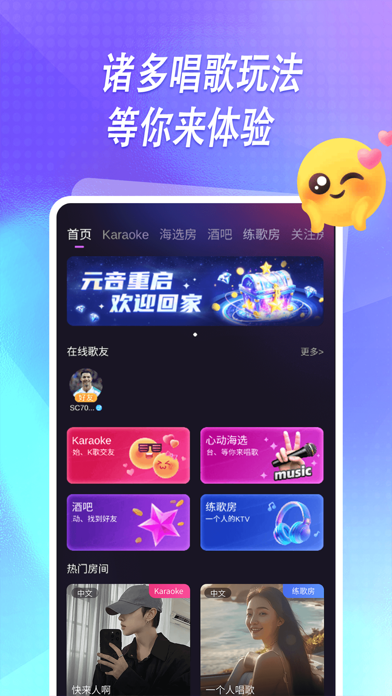 元音 是一款融合语音社交、唱歌交友、社区经营与休闲游戏的移动应用。用户既能在“KTV”玩法中即兴合唱、PK 打擂,也可在“海选场”拍卖其他玩家成为自己的签约歌手,最终经营属于自己的多人语音房 —— “酒吧”。 平台核心愿景:让每个人都能在声音的“舞台”上发光,并获得大家的喜爱。【本次更新内容】 1.已知问题修复。 以上就是此次更新的全部内容了。
