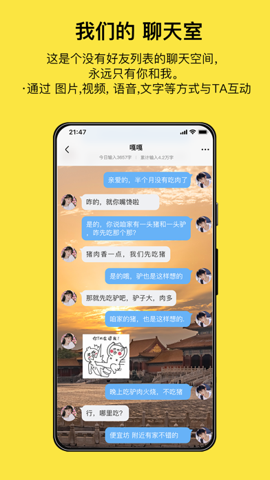 腻歪记录爱情,促进爱情,让一生最宝贵的情感有寄托有记录有回忆。 提供情侣社交服务,情侣云相册,在哪情侣轨迹查看,纪念日倒计时,日常todo和日程提醒,想ta卡片记录,礼物赠送,让爱情有温度、有记录,可看,可想,可触摸。 【情侣云相册】 腻歪有情侣共享云相册,情侣分享每天甜蜜日常,无论图片、文字、视频等都会自动存储在云端,可以多端共享,并且图片可以自动生成音乐视频,可以随时翻阅回忆,并且在照片上发表文字和语音评论。 【情侣聊天】 腻歪有情侣专属的即时通信功能,有情话想说时可以一步抵达,不再需要繁琐的通讯录选取和尴尬的信息发错,并且统计情侣聊天的全部字数和语音长度,再回首时成就感和甜蜜感满满。 【情侣生活分享】 把每天有趣的事、甜蜜的爱、点滴的生活都转成图片视频文字分享在腻歪,也可以把恋爱日记做成标签每天写上一篇日记记录你们的甜蜜爱情。 【情侣共享日程】 TODO用来记录一天的心情和事项,可以设置自己以及情侣对方共享的日程和提醒,将双方的生活合二为一。 【情侣位置共享】 时刻知道TA在哪离你多远,怎么找到他;一键知道如何通过公共交通甚至自驾和步行路线指引去到他身边,路盲女友神器。 【想念记录】想念计数器用简单的手势记录下对彼此的思念,动动手指记录想你,数一数每天我在心里念你多少次;精确到是哪一分哪一秒在什么地方想TA,也可以附上语音和此时此刻的照片,让刹那成为永恒。 【纪念日提醒】所有重要的事件,表白成功,第一次牵手,第一次接吻,第一次约会等等都可以记录,有纪念日倒计时提醒再也不会忘记女友生日。 【聆听】腻歪特色功能,通过聆听功能可以将自己生活作为白噪音分享给自己的爱人,比如在上课,在工作,在购物,在和宿舍室友聊天,在乘坐出租车都可以打开聆听功能,人声触发录制,在一段时间内随机录制声音分享给TA,即是情趣也是真实生活的共享,声音听后即焚不可保存。 【使用须知】 根据相关隐私政策法律法规要求,[在哪] 功能需要用户,双向安装、注册、组CP、授权后才能使用。请务必得到对方同意后再进行使用。新增分手功能 优化修复已知问题