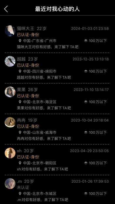 高端专属交友平台,专为成功男士与迷人女性设计。我们采用多重机制严格筛选,有效屏蔽不诚信用户和第三方代理,确保社群的纯净与高质量。界面简洁直观,便捷地连接您的社交需求。男性会员需满足入会标准,女性会员通过视频认证,保障真实性。我们重视隐私保护,鼓励会员真诚相待,享受属于精英群体的独特社交体验。修复若干bug