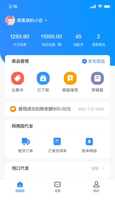 网商园供应商专用版,方便供应商查看钱包、核算当日成交量、交易额等信息,账单明细一目了然,更多功能敬请期待,网商园让您的网上生意更简单。1. 濮院站新增金牌档口功能 2. 优化线上已知问题