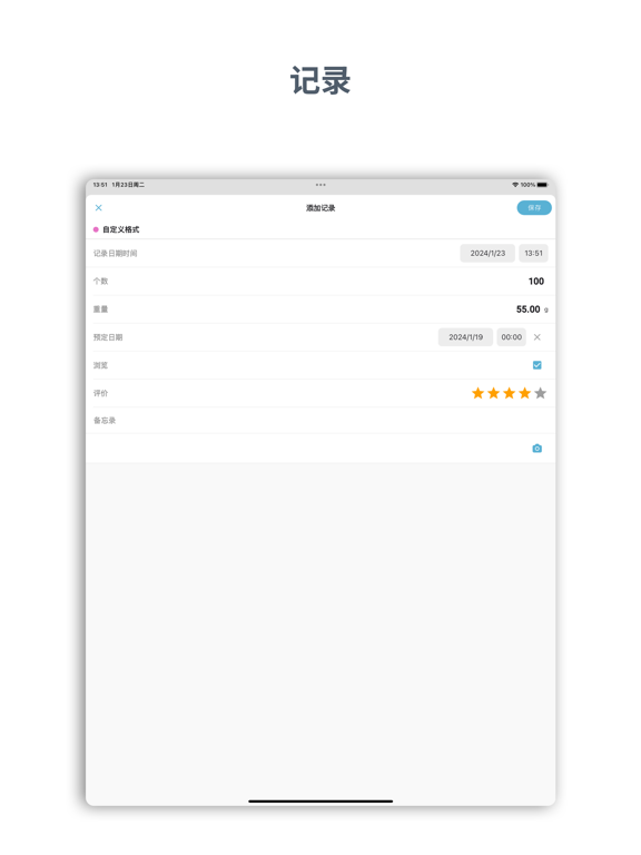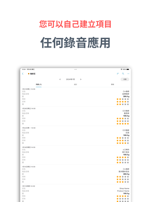 自定义记录是一款用于记录各种事物的应用程序。 您可以根据自己的使用目的灵活定制记录项目,不仅限于阅读、电影或游戏等爱好。 记录的内容可以通过列表清晰地排列,也可以在统计中以图表形式显示。 ■推荐给以下人士 ・已经在备忘录应用程序中添加了爱好等,但想要轻松输入日期和数字的人。 ・虽然在手账中记录了合作伙伴等信息,但想要数字化的人。 ・最近开始在网购中购买咖啡豆的人,希望将自己喜欢的口味记录下来的人。 ・想要记录美味拉面店评价的人。 ■功能介绍 ・记录格式自定义 ・列表显示 ・统计显示(图表) ・日历显示 ・搜索 ・排序 ・文件夹分类 ・密码锁 ・备份 ・CSV导出(付费) ・CSV导入(付费) 【记录形式注册】 可以选择输入格式来添加想要记录的项目。 输入格式包括整数、小数、复选、评价、日期、文本、选择。 【添加记录】 选择记录格式后,可以使用(+)按钮添加记录。 也可以附加照片。 【记录列表显示】 可以指定月、年或全部的时间范围来显示。 可以设置显示的项目数量最多为8个。 【统计显示】 可以使用图表显示记录的总和、平均值等。 还可以使用自定义统计在一个图表中显示多个项目。 【日历显示】 可以使用日历格式快速查看何时记录了什么。 【文件夹分类】 可以按文件夹对记录格式进行分类。 可以在文件夹列表画面中进行文件夹的编辑和添加。 【密码锁】 即使不想让其他人看到内容,也可以使用密码锁定应用程序。 【备份】 可以保存应用程序内的数据。在更换设备时也可以使用。 【CSV导出】 可以以CSV格式输出并保存记录。 【CSV导入】 您将能够从 CSV 文件创建和更新记录。 ■使用方法 (1) 首先,注册格式 例如,如果您想记录已阅读的书籍,将标题设置为'书'。 进行记录项目的添加,例如'标题','作者','评价'等,可以设置要注册的项目。 输入方式可以从以下选择。 ・文本 ・整数 ・小数 ・检查 ・汇率 ・日期时间 ・选项 (2) 添加记录 一旦注册了格式,就可以点击已注册的标题,然后使用(+)按钮添加记录。 (3) 查看记录 可以在列表或图表中查看记录。 还可以进行搜索和排序。- Fixed bug.