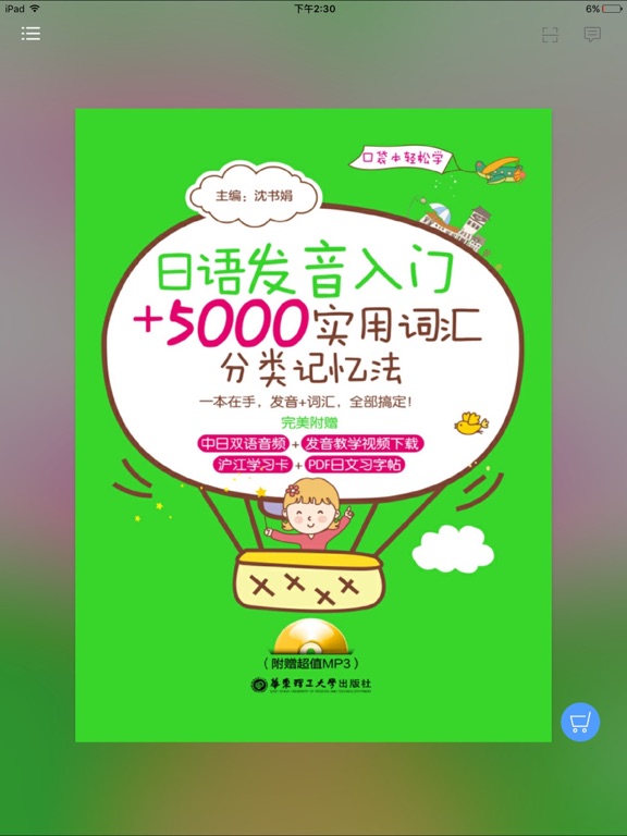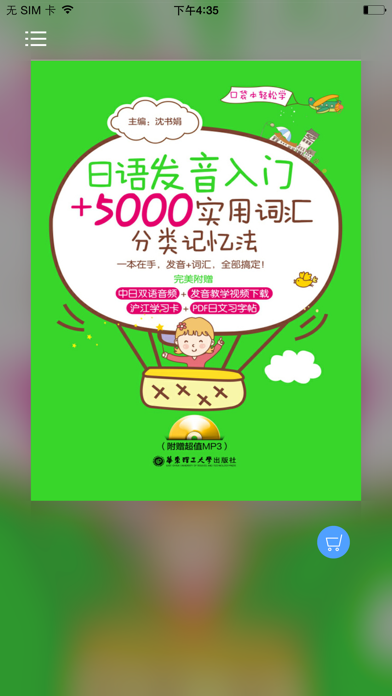 《日语发音入门+5000实用词汇分类记忆法》官方App(有声点读版) 学外语,词汇量才是王道! 《日语发音入门+5000实用词汇分类记忆法》是一系列日语学习书籍中的一册。上手容易、携带方便,帮助您迅速掌握5000个核心日语词汇。本书深受广大日语、日本文化爱好者的喜爱。 全新的移动端《日语实用5000词》App,在完整还原纸书内容基础上,优化了纸书编排、增加了有声点读功能,从发音入门开始,设置不同分类、不同场景,帮助读者快速进入日语语言环境。 【栏目设置】 日语发音入门 基础词汇 场景分类词汇 其他常用词汇 【应用特色】 官方出品,保证原汁原味的内容呈现 真人发声,体验最纯正的日语发音法 分类细致,掌握实用有效的核心单词 一键支付,免去纸书购买的种种烦恼 【联系我们】 e-mail:service@readoor.cn 技术支持:029-68518879修改了一些细小bug;