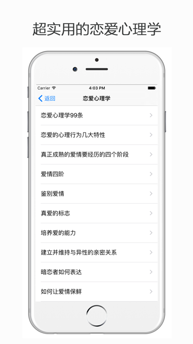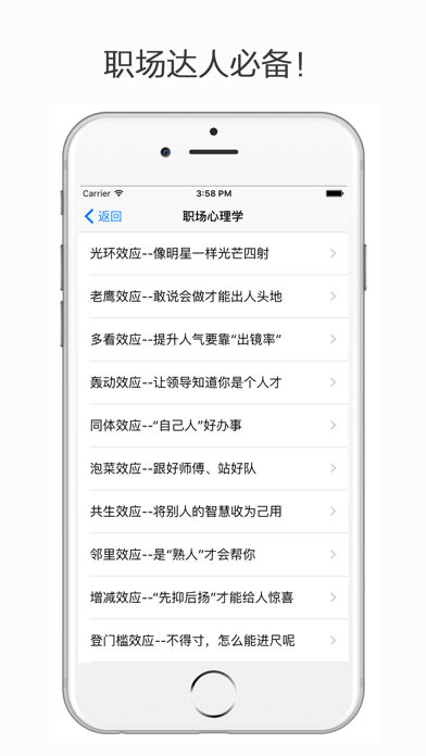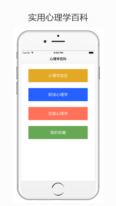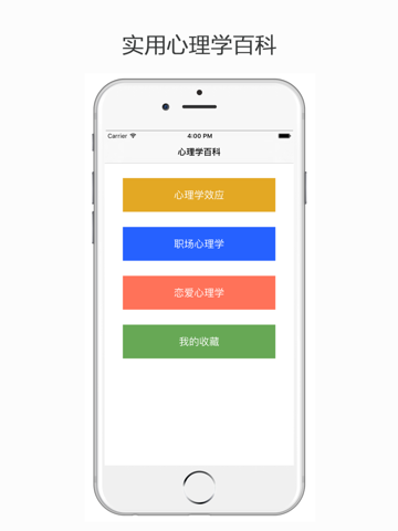 心理学百科包含了心理学效应、恋爱心理学、职场心理学等实用心理学知识,读懂心理学并灵活运用,定能让您的生活多些阳光和快乐!Apple 已更新此 App 以显示 Apple Watch App 图标。