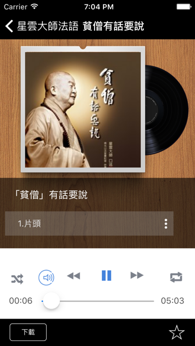 星云大师,一九二七年生,江苏江都人,为临济宗第四十八代传人。一九四九年初来台,一九五三年任宜兰念佛会导师,奠定弘法事业基础。一九六七年创建佛光山,致力推广文化、教育、慈善等事业,先后在世界各地创设二百余所寺院道场,在海内外设立十六所佛教学院,创办美国西来大学、南华大学、佛光大学、澳洲南天大学、智光中学、普门中学、均头中小学、均一中小学,及《人间福报》、人间卫视等。 一九九一年成立国际佛光会,现任国际佛光会世界总会总会长、世界佛教徒友谊会荣誉会长。 为了将星云大师粹炼一生的人生智慧有另一种出版表现型式,以浅显易懂方式弘扬佛理,特别将大师撰有《释迦牟尼佛传》、《十大弟子传》、《百年佛缘》、《星云法语》、《人间万事》、《星云大师讲演集》、《往事百语》、《佛光菜根谭》、《六祖坛经讲话》、《迷悟之间》等著作,录制成有声书数位档,赋与文字新生命;并透过APP行动装置应用服务,流传到世界各地。 期望透过《星云大师云端随身听》APP,可以萦绕在您我耳畔及心中,提供普罗大众更大的方便和修行的利益。我们更新部份优化~Enjoy listening!