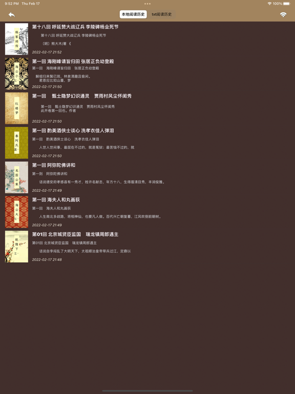 《张文祥刺马案》《双龙传》《十二楼》《三遂平妖传》《青龙传》《明清奇案》《罗锅轶事》《龙图公案》《李公案奇闻》《海公小红袍全传》《海公大红袍全传》《官场斗》《乾隆下江南》《狄公案》《大唐狄公案》《春阿氏谋夫案》《三国演义》《水浒传》《西游记》《红楼梦》《资治通鉴》《资治通鉴》《呼家将传》《杨家将传》《二刻拍案惊魂》《西厢记》《喻世明言》《镜花缘》 *支持包括繁体等9种种字体 *支持局域网内txt文件上传 *多种主题1、新增《二刻拍案惊魂》《西厢记》《喻世明言》《镜花缘》; 2、修复对个bug。