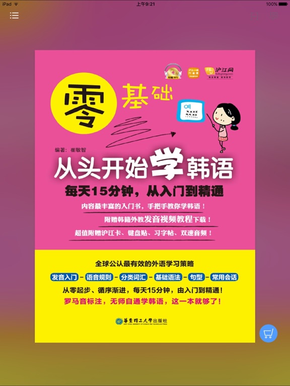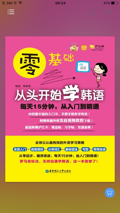 《零基础,从头开始学韩语》纸书官方正版App(有声点读) 韩语菜鸟的福音,每天15分钟,勇敢的开口吧! 《零基础,从头开始学韩语》是由华东理工大学出版社出版的一系列韩语学习书籍中的一册。书中涵盖从发音到句子、会话等全维度的真实韩语场景,深受广大韩语爱好者乃至专业人士的喜爱。 全新的移动端“韩语入门到精通”App,在完整还原纸书内容基础上,优化阅读体验,新增极具实用性的有声点读功能,摆脱“哑巴外语”,每天只需15分钟,轻松得到提升,是您手机里的随身韩语老师! 【App内主要内容】 韩语发音入门、基础词汇、基础语法、常用句型、会话等 (均以有声点读呈现) 【应用特色】 官方出品,保证原汁原味的内容呈现 有声点读,营造纯正韩语的学习氛围 编排极简,全面利用您的碎片化时间 注解细致,彰显正版实用丛书的魅力 本App由华东理工大学出版社联手“阅门户”团队倾情打造。 【联系我们】 e-mail:service@readoor.cn 技术支持:029-685188791、修复了部分bug 2、完善了使用体验