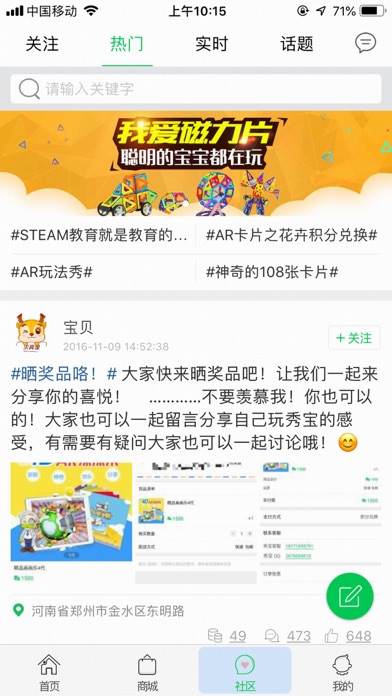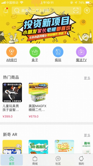 秀宝盒子是一款AR领域的APPTOYS应用,通过AR技术与传统玩具结合,打造新时代的APP玩具:以华丽的3D场景,引人入胜的背景音乐,具有教育意义的动画故事和丰富的互动效果,让儿童更容易融于其中,加深对世界的认知、理解和记忆。秀宝盒子将发现玩具、购买玩具、乐玩玩具、分享玩具乐趣融于一体,让家长方便的挑选购买孩子的玩具,探索新奇的亲子互动方式,与其他家长们一起分享宝宝与玩具的成长历程!解决部分手机摄像头黑屏的问题。