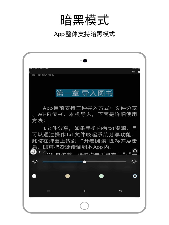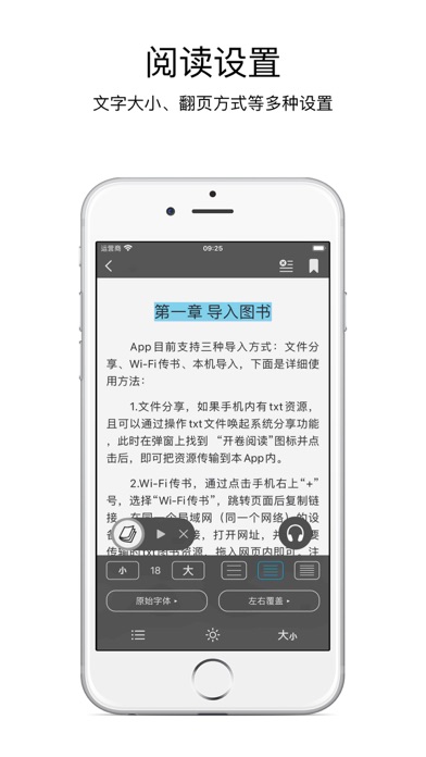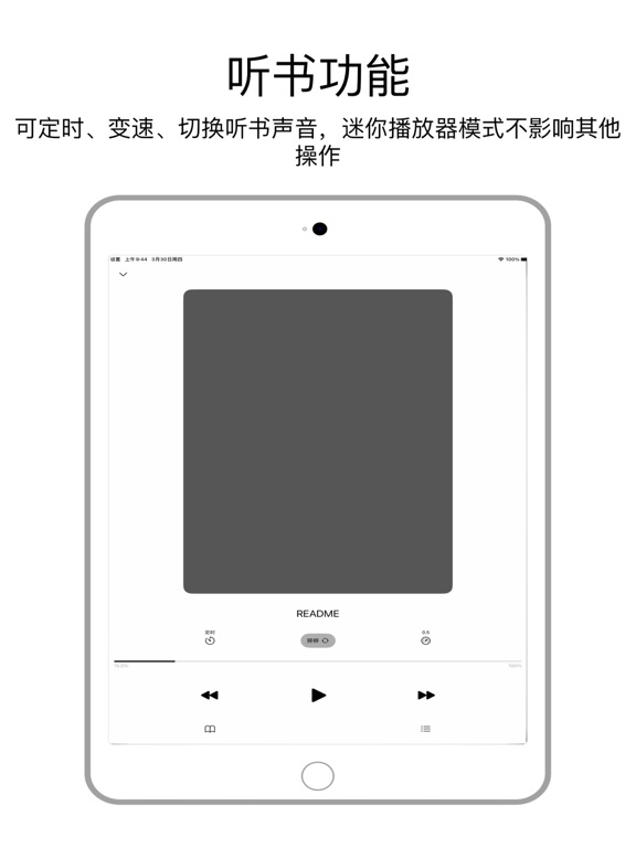 一款简洁、易用,有更好阅读体验的离线TXT阅读听书App,既能享受文字阅读,也可通过听书功能随时随地的感受文字的魅力。 App功能 ● 没有广告。 ● 听书功能,播放器模式和迷你播放模式,包含各种语言的多种声音自由切换,支持定时关闭语音,语速调节;支持耳机、扬声器随时切换。 ● 文件分类功能,支持创建分类,分类排序。 ● 横屏和分屏浏览功能,支持横竖屏切换和iPad分屏浏览、侧拉功能。 ● 多种文字背景,App整体支持黑暗模式。 ● 自定义阅读背景功能,可根据喜好选择填充不同的图片或颜色背景和文字颜色。 ● 多种字体,支持一百多种语言的不同字体。 ● 密码保护,支持阅读密码保护。 ● 全文搜索功能,可以通过关键字跳转到寻找的页面。 ● 多种翻页效果(仿真翻页、左右覆盖、上下滚动等)。 ● 搜索功能,支持搜索已加载的txt文件。 ● 支持多种导入TXT文本的方式(WiFi导入、iCloud FIle导入、iTunes 导入、文件分享、隔空投送)。 ● 支持文件重命名。 ● iPad端深度适配,支持分屏浏览、侧拉、横竖屏切换。 带来更好的阅读体验是我所追求的,如果您觉得App使用还不错,希望空闲时可以花一分钟给App评个星、写两句评论,这会让作为开发者的我更有动力,再接再厉,提供更好的用户阅读体验。 隐私政策:https://snakescanner.com/componet/readerpolicy.html 问题和反馈可联系:sheng1jie@hotmail.com(微博:Developer-SJ)- 修复 耳机切换听书的暂停和开启问题。
