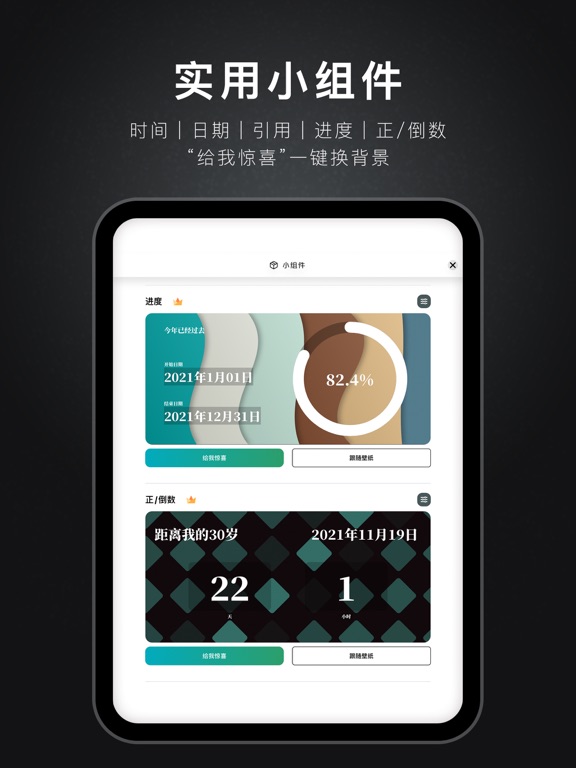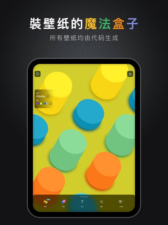 Light提供了一种充满惊喜的生成壁纸的方式。 · 左划随机变换图案 · 右划回到上一个图案 · 上划随机变换配色 · 下划回到上一个配色 用Light,你基本不会刷出两张一模一样的壁纸,就像世界上没有两片一模一样的树叶。 因为参差多态,所以充满乐趣。 除了无限次地轻松刷壁纸,你还可以: * 从丰富的图案库里筛选出喜欢的基础图案; * 将内置配色或者自定义配色应用于壁纸; * 为壁纸加上文字并且编辑文字样式(大小、颜色、字体、对齐、透明度); * 为壁纸添加后期效果(模糊、饱和度、色调)。 除此之外,Light还能够添加几款最实用的桌面小组件(时钟、日期、正倒计时、进度、名言)。 * 点一下“给我惊喜”这个魔法按钮,你可以用本App独有的方式为小组件“换肤”,和壁纸一样,每次结果都是独一无二的。 * 通过调整字体和颜色,定制充满个性的小组件样式。 对于iOS14.3版本以上用户,你可以用Light的快捷指令来生成随机壁纸,只要说一声“嘿Siri,换壁纸”,你就有了一个新的桌面。 甚至,你可以利用快捷指令App中的“自动化”,来实现每天指定时间换壁纸的功能,过程非常简单。 APPLE WATCH版 支持: - 轻点手表屏幕,随机生成一张表盘壁纸。打开iPhone版即可同步及保存; - 获得8款精选表盘,每一款包含多张内置图片,一键安装表盘; - 为表盘添加”Light壁纸“提供的复杂功能,抬腕就能感受到能量加满。 希望你喜欢! # LIGHT 高级版 - 解锁所有当前图案和未来新添加的图案。 - 可以调整文字颜色和字体。 - 解锁所有小组件功能。 # 关于订阅 • 付款将在确认购买时记入您的 iTunes 帐户,并且会自动续订(按所选的持续时间/价格),除非在当前期间结束前至少 24 小时关闭自动续订。 • 帐户将在本期结束前 24 小时内收取续订费用。 • 在有效订阅期间不得取消当前订阅; 但是,您可以在购买后访问您的 iTunes 帐户设置来管理您的订阅和/或关闭自动续订。 隐私政策: http://lj0929.simplesite.com/449499701 使用条款: http://lj0929.simplesite.com/449500591