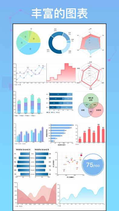 数据可视化神器-图表&大盘制作器 告别电脑!只用手机,就能轻松创建精美图表和数据看板。快制图表是一款一体化工具,让专业数据可视化变得简单易上手。 无论您是想快速为报告做个图表,还是打造一个全面追踪目标的图表报表,我们直观的平台都专为您打造,帮您把原始数据变成直观生动的视觉呈现,清晰又给力! 1. 轻松搞定专业图表 数据讲故事,图表是关键。我们的 App 让创建专业单图变得超简单! 海量图表可选: 十多种图表类型任您挑,饼图、柱状图、折线图、雷达图全都有,还有桑基图、漏斗图等高级选项,总有一款适合您的数据。 深度随心定制: 改颜色、换字体、调标签,轻松匹配您的品牌或风格。“所见即所得”的编辑器,让您的想法完美呈现。 秒出精美图形: 导入数据或手动输入,快图表 瞬间把数字变成可直接用于演示的精美图表。 2. 打造专业仪表盘(也常称作数据大盘Dashboard) 更进一步!把多个图表组合起来,编织成完整的数据全景。仪表盘制作器,就是您讲述完整故事的画布。 拖拽式操作,超简单: 像在屏幕上移动卡片一样,轻松组合图表、文本框、进度条等各种组件,布局随心调。 讲好完整故事: 无论是商业报告、业绩追踪,还是学术总结,都能把所有关键数据整合在一个清晰、易懂、方便分享的视图中。 专业模板加持: 套用我们精心设计的背景卡片模板,无需设计功底,您的仪表盘也能拥有专业又精致的外观。 一图胜千言,满足多样需求 快制图表 功能强大、简单易用,适用于无数场景: 商业报告 & 财务简报 学术论文 & 研究插图 政务数据 & 公共服务展示 学生成绩 & 表现统计 电商销售 & 产品分析 个人健身 & 目标追踪记录 更多场景,等你探索! 支持图表与组件一览: 图表类型: 饼图、折线图、面积图、条形图、柱状图、堆叠条形图、直方图、雷达图、散点图、漏斗图、蝴蝶图、桑基图、组合图(折线+柱状)。 仪表盘组件: 维恩图、KPI指标、进度条(线形、圆形、波浪形)、金字塔图、评分组件、组织结构图、可自定义卡片。 [Terms of Use 使用条款] https://www.apple.com/legal/internet-services/itunes/dev/stdeula/ [Privacy Policy 隐私协议] https://www.privacypolicies.com/live/c9f1fdb4-1f3f-46bc-8e7e-5e1c05444926修复一些已知问题