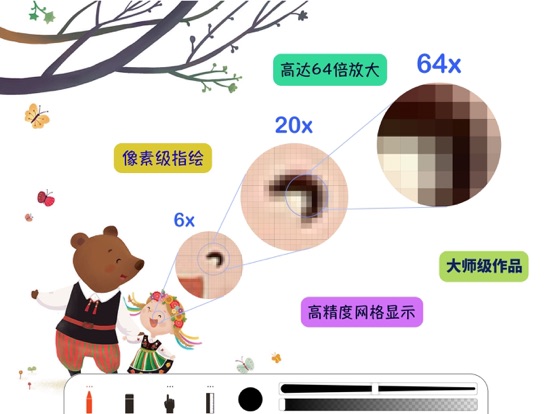 画画树是一款专为创意人士艺术创作而打造的移动绘画应用。其绘画绘图功能极具突破性,拥有高真实感的画笔,突破性的水彩。画布可64倍放大,高精度网格显示,作品精确到像素级。绘画工具功能齐全,超80支精美画笔,橡皮擦、涂抹、直尺、圆规、剪刀、填充等辅助工具,颜色拾取器,并拥有高级图层系统,可以导入背景图片,有素描、水墨、彩绘、色调分离、锐化等高级图层处理。画笔大小与透明度调节,无限撤销与重做,持续自动保存,界面简洁易用,即使是初学者也很快就能上手。GPU硬件加速,如行云流水,随时随地创作漂亮的素描、迷人的图画以及美妙的插图,并将作品分享到社交网络。 画画树不仅仅是绘画,p图修图的功能一样强大,它能给生活照片和摄影也带上艺术气息,当你了解透彻,你会爱不释手,它会变得越来越强大,它还在进步。 如果您发现有什么问题或者有什么建议,欢迎反馈到邮箱:astusking@outlook.com。 艺术生活,创意无限,把美留在身边,记录瞬间,描绘未来。 功能特点: - 超80支精美画笔 - 突破性的水彩画笔 - 涂抹、直尺、剪刀等辅助工具 - 无限撤销与重做 - 高级图层系统 - 高级图像处理 - 64倍放大,高精度网格显示 QQ交流群:421127831,邮箱:1060990980@qq.com1. 新增路径工具和选区工具。 2. 可以切换横竖屏。 3. 可以自定义画布大小。 4. 可以保存透明图层。 5. 可以添加参照图。