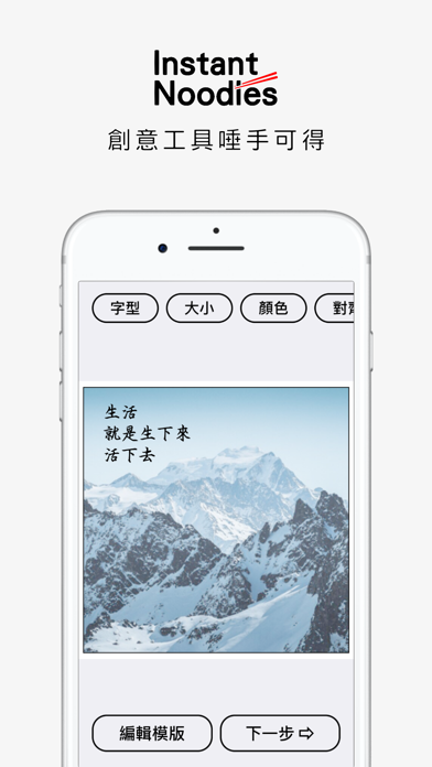 《方便面》使用者平均一分钟就能够制作出一张语录图片,速度比实际泡一碗方便面还要快! 有时候,灵感在一瞬之间就溜走了,但是有了《方便面》,你能够即时记录灵感并制成图片,轻松分享到自己的朋友圈! 【感谢网友一致盛赞】 • 这是我一直在期待的app!好用(By 匿名鳄鱼) • 非常简洁有力的APP ......太可爱了!(By 爆肝的菜鸟工程师) • 更多好评持续搜集中,欢迎你一起留下评论,让我们为你做得更好 【方便面是什么?】 《方便面》是一款专业级的文字编辑神器,不只内附多款颜色与字型,还提供个人水印、企业 Logo 的上传。使用《方便面》,你可以在社群软件上发挥创意展现个人特色,成为众人的目光焦点! 【方便面可以做什么?】 • 语录图 • 表情包 • 单字卡 • 便利贴 • 邀请函 • 心情纪录 • 社群贴文等 【经典原味有什么特色?】 • 多达 10 种丰富字体 • 可自订文字、背景、边框颜色 • 可以从相簿挑选照片当作背景 • 可搜寻免费图库上海量图片素材 • 多款滤镜与雾化特效可套用到照片上 • 可以为图片添加手写签名 • 幸运签诗可以编辑与收藏 • 全 App 内无广告,版面干净不扰人本次更新为您带来全新的简体中文字型!感谢您一直以来对方便面的支持与厚爱,我们真诚地希望您会喜欢这款我们认真研发的 App,也许还不够完美,但我们持续在进步的路上努力!如果您对这次的改进感到满意,恳请您给予我们五星好评,您的支持是我们不断前行的最大动力,让我们有机会将更多美好传递到您的手心。