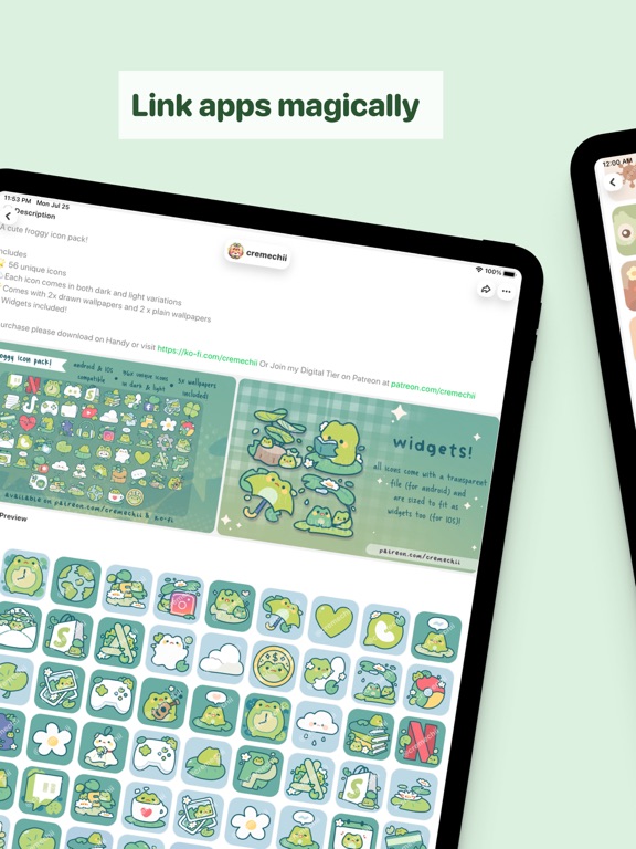 从独立艺术家那里获得超棒的iOS主题图标包! 不再需要捷径! 现在就下载,一键享受美学图标、动画部件和实时壁纸吧 第一个连接艺术家和用户的iOS主题平台。 主要特点。 ■不再需要捷径! 厌倦了通过快捷方式一个一个地创建图标? Handy帮助你通过一键式链接和安装图标。大多数主题都是由艺术家预先链接的,不需要再进行链接。 ■在一个地方管理所有的主题! 想要组织你所有的主题? Handy为您提供服务。你拥有的所有主题都将存储在你的文件夹中,并带有预览。更换主题从未变得如此简单。 ■富有创造性! 尝试创建你自己的主题? Handy提供了一个工具,帮助你组织你的图标、小工具和壁纸。你可以从视频或你的任何实时照片中生成实时壁纸。 ■轻松分享! 觉得难以分享您的设计? Handy可以为你的主题或你的作品集生成一个分享链接。你的所有朋友都可以从链接中看到你的精彩设计。 ■赚钱! 创意应该得到重视! Handy帮助您在世界各地销售您的主题。设置你自己的价格,用你的当地货币获得报酬。 让你的手机感觉像你的! 订阅方便快捷俱乐部 你将得到一个特殊的权限,进入handy服务器,帮助你安装和管理具有原生经验的图标。 所有个人数据都根据服务条款和隐私政策得到保护。 服务条款: https://fatllc.notion.site/Terms-of-Service-f1597bb9fe4a40a896df94483f78072b 隐私政策: https://fatllc.notion.site/Privacy-Policy-d783115a43634665ba773a1e7e529417修复了一些已知的bug