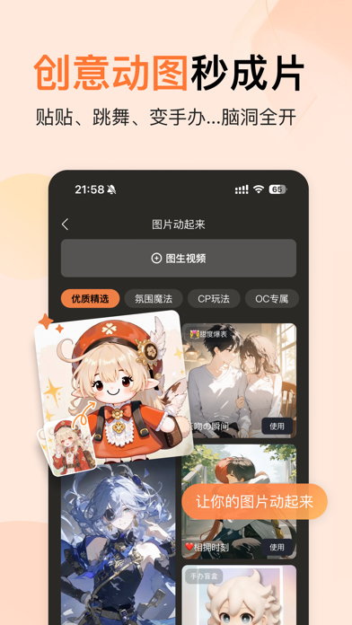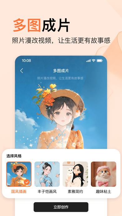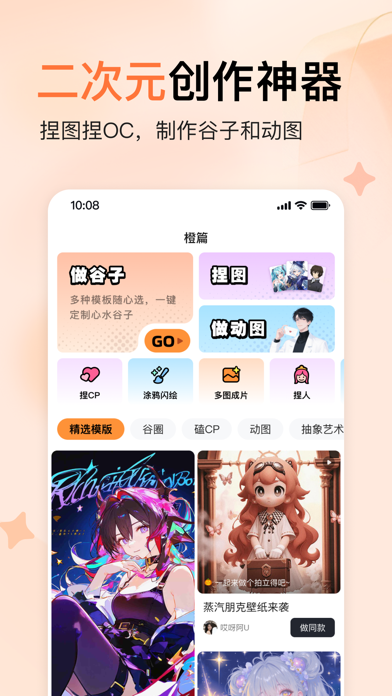 橙篇,专属于年轻人的创作和交流平台。 这里有好用且全能的二次元创作工具组合—— 【搞二创】快速、免费制作角色/OC的壁纸、头像、梗图、小漫画、动漫视频等,更多“组合技”等你来探索! 【做周边】心动谷子秒做!几十种模版可选,无料周边轻松产出,实现吃谷自由! 【找同担】分享作品到社区,与同圈小伙伴产粮吃粮,再小的兴趣爱好,也要闪闪发光! 这里还有智能PPT、长文写作、超长文档总结等工具,希望帮你高效完成工作、学习中的各项任务,兴趣爱好、事业学业双丰收~ 重点功能: 【捏图】近百角色,数十风格,快速捏出属于你的原创角色;更可以捏CP,无论烫圈冷门,白月光还是意难平,你来写剧本。 【制作谷子】几十种谷子模版,多种谷子类型全覆盖,想要的谷子即刻做起来;更可以下载谷子印刷图,直接打印,实现吃谷自由! 【动漫视频】图片转视频/实况。原创角色图动起来,惊喜不断,快来体验。 【虚拟聊天】近百角色,7*24陪伴。遇见多样AI角色,开启专属于你们的故事! 【涂鸦闪绘】随意涂鸦,实时生成图像,让想象力飞一会。 【多图成片】上传多张照片,秒变动漫故事视频,让生活照片也能充满动漫故事感。 【智能PPT】基于主题、图片或文档,快速生成多图PPT,海量精美PPT模版随心选择,一键搭配应用 【长文生成】基于主题或文档,一键生成大纲,和格式标准的万字长文。 【自动续费百度橙篇会员】 订阅名称:百度橙篇会员连续包月 时间:购买后立即生效 周期时长:1个月 价格:39元 取消续订:如需取消订阅,请在当前订阅周期到期前24小时以前,手动在iTunes/Apple ID设置管理中关闭连续包月功能,到期前24小时内取消,将会收取订阅费用。具体取消步骤为:在IOS设备【设置】【iTunes Store与App Store】选择【Apple ID】点击【查看Apple ID】在账户设置页面点击【订阅】取消订阅即可。 服务协议: https://appcp.baidu.com/naflowerv3/browse/subscribeprotocol?protocolType=user&naviHidden=true 橙篇会员服务协议: https://appcp.baidu.com/naflowerv3/browse/subscribeprotocol?protocolType=vip&naviHidden=true 橙篇会员自动续费服务协议: https://appcp.baidu.com/naflowerv3/browse/subscribeprotocol?protocolType=vipAuto&naviHidden=true优化产品体验,修复了已知问题