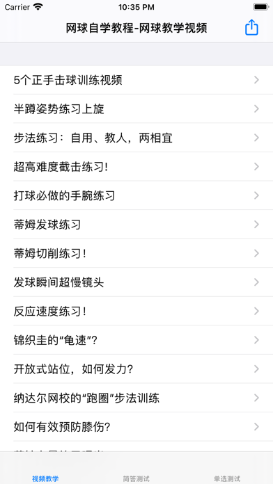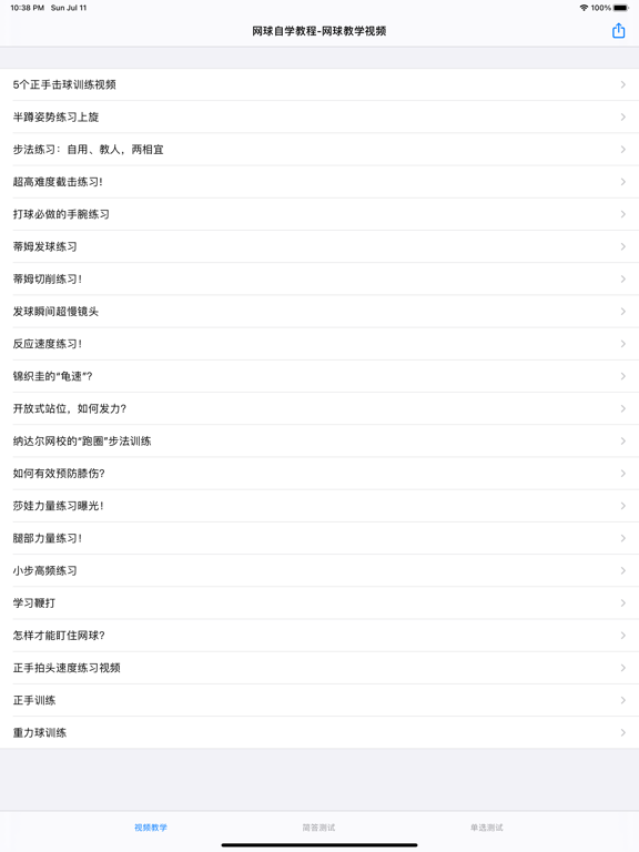 网球自学教程是针对网球爱好者设计的网球学习教程,内容包括了网球技巧教学视频、测试、问答,十分适合相关人士使用。包括: 5个正手击球训练视频.mp4半蹲姿势练习上旋.mp4步法练习:自用、教人,两相宜.mp4超高难度截击练习!.mp4打球必做的手腕练习.mp4蒂姆发球练习.mp4蒂姆切削练习!.mp4发球瞬间超慢镜头.mp4反应速度练习!.mp4锦织圭的“龟速”?.mp4开放式站位,如何发力?.mp4纳达尔网校的“跑圈”步法训练.mp4如何有效预防膝伤?.mp4莎娃力量练习曝光!.mp4腿部力量练习!.mp4小步高频练习.mp4学习鞭打.mp4怎样才能盯住网球?.mp4正手拍头速度练习视频.mp4正手训练.mp4重力球训练.mp4支持iOS 18; 丰富更多内容;