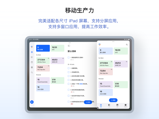 浮力清单(Forlist),是一款简洁纯粹的清单管理工具。 设计初衷是希望借助 App 的使用,我们能培养出一个拆解事件的思考习惯,不管是生活还是工作中,遇到需要处理的事情,都能快速把它清晰的整理成任务清单。 很多人被当前社会营造的焦虑感,引导进入一些误区,各种时间管理的概念,甚至让每一分钟都想按计划执行。但我们并不这样认为,时刻拥有清晰的头脑,能快速分析自己要做什么,才是问题的根本。 浮力清单强调以清单维度的思考,一个流畅且合理的整理任务的过程,养成这样的思维方式。谨慎的设定计划日期,保持清晰的头脑。这是我们认为 GTD App 可以做到的事情。 浮力清单(Forlist) 有以下特点: 1. 任务和清单的分组管理,建立层级管理事项,逐个击破。 2. 任务的批量操作,快速高效,不做无效的重复。 3. 独具特色的清单历史,对于同一场景的多次任务检查,记录每一次的状态。 4. 多人协作,多平台实时同步,真正的生产力。 5. 支持 iOS 各种新特性,锁屏小组件,主屏幕小组件,iPad 分屏应用,台前调度自由缩放,均完美支持。 6. 支持计划/日历视图。 7. 支持四象限任务管理。 8. 快速搜索任务。 更多 希望您在熟悉之后,会发现更多有用且好用的功能点,下面简单列举一些: - 拖动清单排序和分组管理; - 拖动任务、组进行排序; - 批量操作任务,完成、复制,分享等。 - 可跟随系统的深色模式; - 可多种形式导出清单的状态和记录; - 桌面小组件,锁屏小组件; - 从剪贴板创建任务; - 同步计划到系统日历; - Apple Watch 应用支持; 内购说明 第一次安装后,我们提供 7 天PRO版本体验期,结束后有包年/包月两种订阅方式。基础版本永久支持免费使用,但我们更希望您购买订阅使用完整功能。 付款:用户确认购买并付款后记入iTunes账户。 续订:苹果iTunes账户会在到期前24小时内扣费,并且对续订费用进行校验,扣费成功后顺延1个月使用时间。 取消续订:如需取消续订,请在当前订阅周期到期前24小时以前,手动在iTunes/Apple ID设置管理中关闭自动续订功能。 隐私政策:https://forlist.com/privacy 用户条款:https://forlist.com/terms 若有任务问题,都希望您与我们取得联系。 support@forlist.com修复一些bug