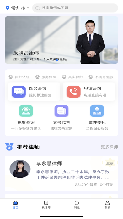 询律律师是连接律师和用户两端的法律服务平台,打通用户与律师之间信任的通道。 在公开透明的机制下,对律师的服务进行评价,也可以通过律师在平台的信誉自由选择律师 询律律师独有的用户视角的产品版块: 1、【免费咨询发布台】是用户与律师建立信任的平台,简单的法律问题发布后,可咨询多个律师回答,用户采纳适合的答案,还可以选择满意的律师一对一深度咨询。 2、【快速咨询】一键发布,律师1秒应答,快捷专业的律师服务。 3、【电话咨询】您的各种法律咨询需求均可以和律师进行电话交流沟通,加快沟通效率,快速解决你的问题。1、优化部分bug问题 2、新增检测版本更新功能