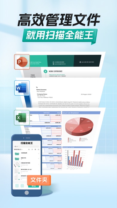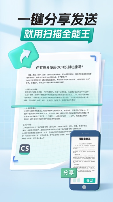 扫描全能王是一款集文件扫描、图片文字提取识别、PDF 内容编辑、PDF 分割合并、PDF 转 Word、电子签名等功能于一体的智能扫描软件。自动扫描,生成高清扫描件,支持JPEG、PDF 等多格式保存,还能将扫描件一键转换为 Word/ Excel/ PPT 等多种格式文档,通过手机、平板电脑、电脑等多设备同步查看。 -----功能亮点----- 【手机扫描仪】 手机拍纸质文档,智能去除杂乱背景,生成高清JPEG、PDF文件。默认自动扫描,对准纸质文档自动拍照,解放双手。 支持多种图像优化模式,可手动调节图像参数,将纸质文件快速转为清晰的扫描件。 【图片转文字利器】 智能 OCR 识别文字,即使搜索对象是图片,也能输入关键词轻松定位,高亮显示。 支持识别中、英、日、韩、葡、法等 41 种语言,还能一键复制、编辑图片上的文字,支持导出为 Word/Text/TXT 格式。 【个人文档管家】 支持一键导入 PDF、图片、表格等多类型电子文档;标签归类,多文件夹保存,一站式管理保存工作、学习、生活中各类资料。 手机、平板、电脑等多设备端,随时同步查看管理文档。 【PDF 编辑修改】 自由组合 PDF 文档,对多个文件进行页面删除、顺序调整、插入支持、页面合并等操作。 支持一键涂抹、添加批注,轻松编辑文档;高级账户还能设置智能水印铺满,一键生成电子签名等功能,确保文档安全。 【PDF格式转换】 PDF、Word、Excel、PPT 和图像文档之间格式互相转换,一键分享或下载到本地; 格式转换后可保持文本、图像等文档的原始布局,实现版面还原。 ----他们都在用扫描全能王做什么---- ● 职场人士:随时扫描手边合同、公司证件、开会 PPT 等,一键保存或分享PDF,随时查找翻阅,非常给力的办公软件 ● 学生:课堂扫描笔记、白板、PPT,复习找资料快速又方便;线上提交纸质材料、个人证件扫描件,高清又专业 ● 老师:扫描课堂白板内容、学生考卷错题整理,发给家长同步教学进度,老师用心家长安心 ● 医生:疑难病症资料随时扫描记录,同行交流会议 PPT 留存,整理留档,也方便给其他医院科室共同交流 ● 设计师:扫描保存设计手稿,一键提取线稿,随时捕捉灵感初现时的大胆想象 …… -----升级高级帐户,享更多强大功能----- ● 纸质文档一键转换 Word/Excel,轻松整理各类报表报告; ● 拍图识字,提取图片或扫描件中的文字,一键复制导出,快速整理资料; ● PDF 加密、添加电子签名、一键铺满水印等,分享协作高效安全; ● 支持身份证、护照、企业三证、户口本等近百种证件扫描,1:1 生成高清扫描件,可用于证照资料提交、电子开户等; ● 10G 超大云空间,文件夹分类标签管理,查找使用更方便。 一经确认购买订阅产品,iTunes会直接扣除相关订阅所需费用。 扫描全能王高级帐户可通过iTunes帐户信用卡直接付费订购。若当前订购周期(一个月/一年)结束前24小时内仍未取消续订,将会自动续订下个周期的高级帐户。 在当前订购周期内,无法取消当前周期的使用。您可以通过iTunes帐户的设置来管理或取消购买。 您的试用会立即结束,如果您付费购买了产品内的订阅。 关于服务条款: https://www.camscanner.com/app/service?language=zh-cn 关于隐私政策: https://www.camscanner.com/app/privacy?language=zh-cn ----使用建议---- 为确保你能获得清晰的扫描图,请在拍照时: ● 光线充足,尽量避免抖动 ● 尽量使图片占满拍摄屏幕 若你喜欢扫描全能王,或者有其他任何意见,请花一点时间给我们写评论,或发邮件至isupport@camscanner.com,这将帮助我们不断改进产品,给你更好的使用体验! ----关注我们 ---- 在新浪微博上关注我们 @扫描全能王 在微信上关注我们,搜索公众号:扫描全能王 在Twitter上关注我们 @CamScanner 在Facebook 上关注我们:CamScanner 在Google+上关注我们:CamScanner· Word、Excel 转换效果全面优化,版式更贴近原稿,细节还原更精准 · PDF 编辑体验升级,界面更直观,处理更便捷 · 图片文档批注体验升级,可对批注进行二次编辑,并支持多设备同步 · 证件扫描体验优化,操作更顺畅;隐私保护更到位,使用更安心