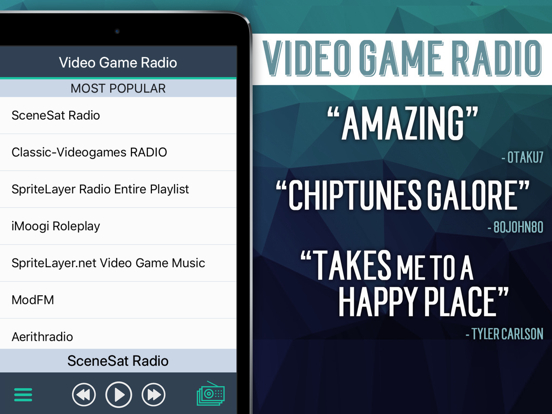 电玩电台 - 热播美国广播电台音乐 提供下列电台: *** Video Game Radio *** Chiptunes - DI Radio Nintendo SLAY Radio 8bitx Radio Network SpriteLayer.net Video Game Music Retro PC GAME Radio RadioSEGA.net Stream VIDEO GAME QUALITY :: Circuit-Board Radio :: Chiptune and more CVGM.net - Computer Video Game Music The Spinning Stream: Nintendo Radio Game-Streams - Video Game Music StreamingSoundtracks.com - Movie Game & Anime *** Beyond VG *** Friends Forever AnimeNfo Radio Radio PARALAX - 24h Playlist EVE-Radio.com: EVE Radio AnimeAMAZE SubSpace-Radio.net: Combined Kingdom Hearts Recharged Radio NoLife-radio.com The Video Games Channel ARCADE RADIO - RETRO Game Music Super Retro Playground and MORE... For more information, including Terms of Service & Privacy Policy, visit myindieapp.com. Thanks for listening! 请尽情享受!• Latest iOS Support • Bug Fixes & Improvements