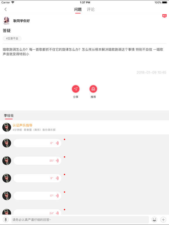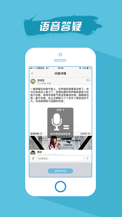 学唱歌,歌者盟 歌者盟是一款学习唱歌技巧的教学软件,可以帮助广大声乐爱好者从零基础开始专业学习现代流行唱法的知识和技巧,通过练习逐渐进行入门提高。科学系统的为您解决高音上不去、低音下不来、气息不够用、音色不好听、唱歌容易累、感情不到位、五音不全等问题,全面提高你的唱歌水平。 歌者盟老师版包含『演唱问答』模块,老师可以方便的用文字、语音来解答学生的唱歌问题,也可以推荐适合学习的声乐练习和训练计划供学生练习,帮助学生迅速的提高演唱水平。学生可以用文字、语音等方式向老师提问,也可以发布自己演唱的歌曲求老师点评指导。支持回复全民K歌、酷我K歌、天籁K歌等手机KTV音乐软件录制的歌曲。修复了一些BUG,提升了使用体验。