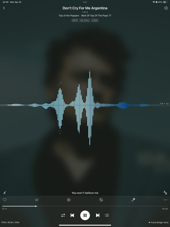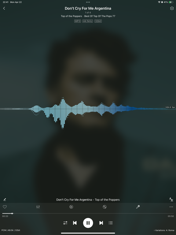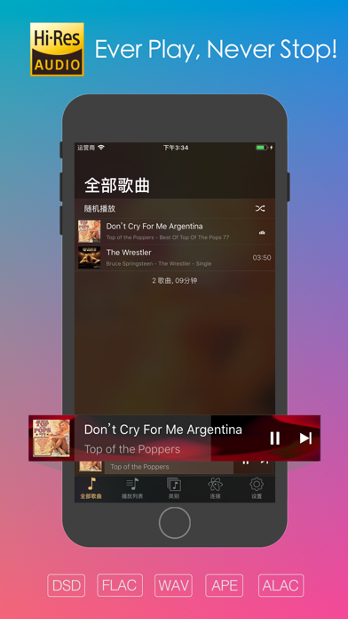 Ever Play 90%以上的功能都可以免费使用!别犹豫,下载Ever Play并享受音乐吧。 中国大陆ICP备案号:京ICP备2024041898号-3A “Everplay”是一款iOS平台下的Hi-Res音频播放器,采用新的UI设计并且支持所有流行的音乐格式,包括DSD文件。“Everplay”支持播放本地,iTunes 音乐库和网盘中的音乐。 “Everplay”提供上千种可视化效果,内嵌到播放器中的可视化效果会随机切换并随着音乐变幻,让您能够一边听着音乐一边享受视觉盛宴。当然这是整个App Store中最绚丽的可视化效果之一。 “Everplay”最重要的功能之一就是对DSD文件的支持,最高支持11.2MHz的DSD256文件。DSD文件支持两种模式播放,一种是将DSD文件转化为PCM文件播放,另一种则是通过DoP的方式输出给支持DoP的外置DAC(需要连接相机套件)。 “Everplay”支持最高 384kHz/32bit 格式的音频文件,并且提供了升频模式,你可以将任意格式的音频升频为最高 384kHz/32bit 格式的PCM输出(需要外接设备支持,iPhone 本身最高只支持48kHz/32bit输出)。当然,“Everplay”也能够根据外接音频设备自动选择合适的输出格式。 "Everplay"支持自定义播放列表。至于音乐管理和传输,“Everplay”支持三种传歌方式,分别为:局域网内Wi-Fi传输、iTunes传输和Airdorp。通过Wi-Fi传输方式,你只需在局域网电脑的浏览器中输入相应的ip地址就能将电脑中的歌曲传输到“Everplay”App中,方便快捷。而Airdrop只需要在电脑中通过右键分享到你的移动设备就能选择在“Everplay”中打开。 “Everplay”重新设计了精美并且信息完整的播放界面,除了一般的播放控制功能,您还能非常方便的获取到音频文件的格式信息和输出信息,一切都为了更好的交互。 “Everplay”app将一直保持更新,因为音乐不死!有任何问题请通过app的Feedback功能给我们反馈。通过你们的反馈,真的解决了很多问题,谢谢你们! [支持网盘] • 115 网盘 • 阿里云盘 • 百度网盘 • One Drive • SMB1/2/3 • WebDAV • 腾讯微云 • GoogleDrive • 123网盘 [支持格式] • FLAC(MQA), APE, WAV, ALAC(M4A), AIFF, AIF, MP3, WMA, OGG, AAC, DTS • SACD(ISO), DSF, DFF(DSD64, DSD128 和DSD256 既支持转化为PCM播放也支持DoP模式输出) • CUE(Sheet) [文件管理和传输] • WiFi 传输(Http) • iTunes 文件共享 • Airdrop • App内文件管理 • 播放列表管理 [高级功能] • 支持阿里云盘、微云,百度网盘,OneDrive授权,和SMB, WebDAV连接,播放在线音乐无压力 • 支持从iTunes Library导入歌曲 • CarPlay 支持 •上千种音乐可视化效果随着音乐变幻 • 最高支持384kHz/32bit的Hi-Res高清音频文件 • 最高支持11.2MHz的DSD文件播放 • 近百种均衡器设置,支持保存自定义均衡设置 • 每首歌曲随机音效 • 歌曲搜索功能 • 全面显示歌曲信息和播放输出信息 • 升频功能 • 睡眠定时器 • 防止屏幕休眠功能 • 自动下载专辑图片 • 自动下载艺术家图片 • DSD转化为PCM播放 • Dop(DSD over PCM)输出 • 自定义采样率输出 • iOS14 支持 • 快捷方式支持 • Siri 控制播放 • 重新设计的播放器界面和交互 • 批量删除歌曲和文件 • 多种排序方式 • 在线搜索歌词 • 无缝播放 • 设置重采样算法 • 增加快进与快退功能 • 倍速播放 • A→B播放 • 播放页面滑动专辑图片切歌 • iPadOS 多窗口支持 URL Scheme: FancyMusicPlayer “Everplay”提供基于苹果应用内购买的自动续订服务来播放Hi-Res & DSD音乐和可视化效果 订阅名称: Hi-Res & DSD & Visualizer 订阅价格: ¥25.0 (RMB) 订阅期: 12个月 使用条款: http://www.appgreat.com/FancyTermsOfUse/ 隐私政策:http://www.appgreat.com/FancyPrivacyPolicy/ 自动续订服务: 您的订阅服务将在1年期满后自动续订. – Price may vary by location. – Payment will be charged to iTunes Account at confirmation of purchase – Subscription automatically renews unless auto-renew is turned off at least 24-hours before the end of the current period – Account will be charged for renewal within 24-hours prior to the end of the current period, and identify the cost of the renewal – Subscriptions may be managed by the user and auto-renewal may be turned off by going to the user's Account Settings after purchase – Any unused portion of a free trial period, if offered, will be forfeited when the user purchases a subscription to that publication, where applicable ※请注意“Everplay”是一款音乐播放软件,您需要将下载好的音乐文件通过iTunes 或者Wi-Fi 共享的方式上传到App的documents 文件夹之或者登录含有歌曲文件的网盘才能播放音乐。iOS26适配, 增加搜索页面。