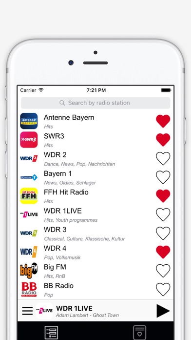 德国电台 允许您使用互联网连接来免费收听超过600家实时广播电台的节目。 应用程序的功能: - 在一个应用程序中集成了超过600家广播电台和网络电台(国内和本地), - 采用一个简单和高效的界面来保证对应用程序的快速访问和一个最佳、最稳定的质量, - 通过一个强大的搜索引擎,利用名称和音乐种类来轻松地找到广播电台, - 利用一个最喜欢列表来保存您的广播电台和网络电台偏好, - 您可以在收听广播电台的同时,将其放在后台运行,以便可以同时使用其它应用程序, - 自动和持续的更新广播电台和网络电台(这些电台可能暂时无法提供,根据电台广播的情况而定) 广播电台所有者:要添加或删除您的广播电台,请发电子邮件至contact.rmapps@gmail.com。 可提供的广播电台和网络电台: 103.7 UnserDing 104.6 RTL 105'5 Spreeradio 89.0 RTL 917xfm 92.9 Radio Mülheim 99drei Radio Mittweida Absolut Hot Absolut Radio Absolut relax Alsterradio Antenne AC Antenne Bad Kreuznach Antenne Bayern Antenne Düsseldorf Antenne Frankfurt Antenne Kaiserslautern Apollo Radio B5 Aktuell B5 Plus Babelsberg Hitradio baden.fm Bayern 1 Bayern 2 Bayern 3 Bayern Plus Bayernwelle Südost BB Radio Berliner Rundfunk Bermuda Funk CampusFM delta radio Deluxe Deutschlandfunk DeutschlandRadio Kultur Die Neue 107,7 domradio Donau 3 FM DRadio Wissen echo-fm 88,4 egoFM elDOradio 93.0 Energy ERF Plus ERF Pop Fantasy Dance FM FFH Brandneu Freies Radio GAYFM Hamburg Zwei Harmony FM Hellweg Radio Hertz 87.9 Hit Radio Hochschulradio Aachen horads 99.2 FM HR1 HR2 HR3 HR4 hr-info Jam FM JazzRadio 101.9 Kiel FM Kiss FM Klassic Radio Laut.fm m94,5 mdr 1 Radio Sachsen MixNation multicult.fm NDR 1 NDR 2 NE-WS 89.4 N-Joy Radio Nordwestradio Nova Radio Oldenburg Eins Oldie-Radio OldieStar Radio osradio 104,8 Ostseewelle Hit Radio Planet Radio Punkrockers Radio pure fm R.SA Radio 21 Radio 2Day Radio 7 Radio 700 Radio 8 Radio 90,1 Radio 91.2 Radio Alpenwelle Radio Arabella Radio Augsburg Radio AWN Radio Bob! Radio Bochum Radio Bonn/Rhein-Sieg Radio Brocken Radio Charivari Radio Chemnitz Radio Corax Radio Darmstadt Radio Dresden 103.5 Radio Duisburg Radio EINS Radio Emscher Lippe Radio Ennepe Ruhr Radio Erft Radio Erzgebirge Radio Essen Radio Euskirchen Radio F Radio Fantasy Radio ffn Radio Flensburg Radio Flora Radio freeFM Radio Frei Radio Galaxy radio GOLD radio GOLD classics Radio Gong 106,9 Radio Gong 96,3 Radio Gong 97,1 Radio Gütersloh Radio Hagen Radio Hamburg Radio Hannover Radio Herford Radio Herne Radio Herne Dein Radio Hochstift Radio Homburg Radio IN Radio Jade Radio K.W. Radio Kiepenkerl Radio Kö Radio Köln Radio Lausitz 107.6 Radio Leipzig 91.3 Radio Leverkusen Radio Lippe Radio Lippe Welle Dein Radio LOTTE Radio Mainwelle Radio MK Radio Neandertal Radio Neckarburg Radio Neunkirchen Radio Nora Radio Nora 80er Radio Nora Oldies Radio Nordseewelle Radio Oberhausen Radio Oberland Radio Okerwelle Radio Ostfriesland Radio Paloma Radio Paradiso Radio RSG Radio RST Radio RurRadio Salü Radio Sauerland radio SAW Radio Seefunk Radio Siegen Radio StHörfunk Radio Teddy Radio Ton Radio Top 40 Radio Trausnitz Radio WAF Radio Westfalica Radio WMV Radio Wuppertal Radio X Radio Z Radio Zusa Radio Zwickau 96.2 RadioAktiv RauteMusik RBB RMN Radio Rock Antenne RPR1. rs2 80s rs2 Live rs2 Partymix rs2 Relax rs2 Top 40 RSA 1 RSA 2 RSA 3 RT1 RTL Neue Hits RTL Rock & Pop Sender KW SPORT1.fm SR 1 AntenneSaar SR 1 Europawelle SR 2 - Off-Beat SR 2 KulturRadio SR 3 - Oldiewelt Stadtradio Göttingen Star FM 87,9 Star*Sat Radio Sunshine SWR1 BW SWR1 RP SWR2 SWR2 Archivradio SWR3 SWR4 BW SWR4 RP SWRinfo Syltfunk Teddy Cool Teddy Tide Radio Top FM Wartburg Radio WDR 1LIVE WDR 1LIVE Diggi WDR 2 WDR 4 WDR Event WDR Kiraka WDR5 Wüste Welle You FmApple 已更新此 App 以显示 Apple Watch App 图标。 Thanks for using our app. Every update includes improvements and reliability :