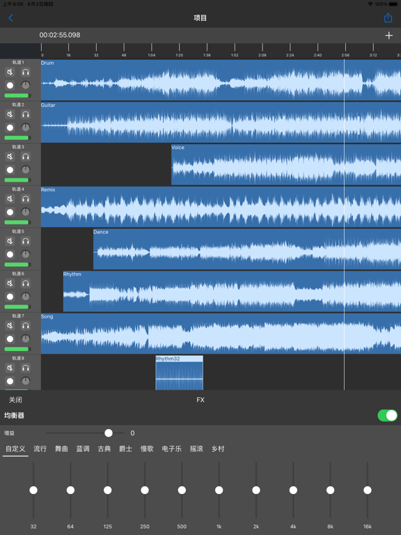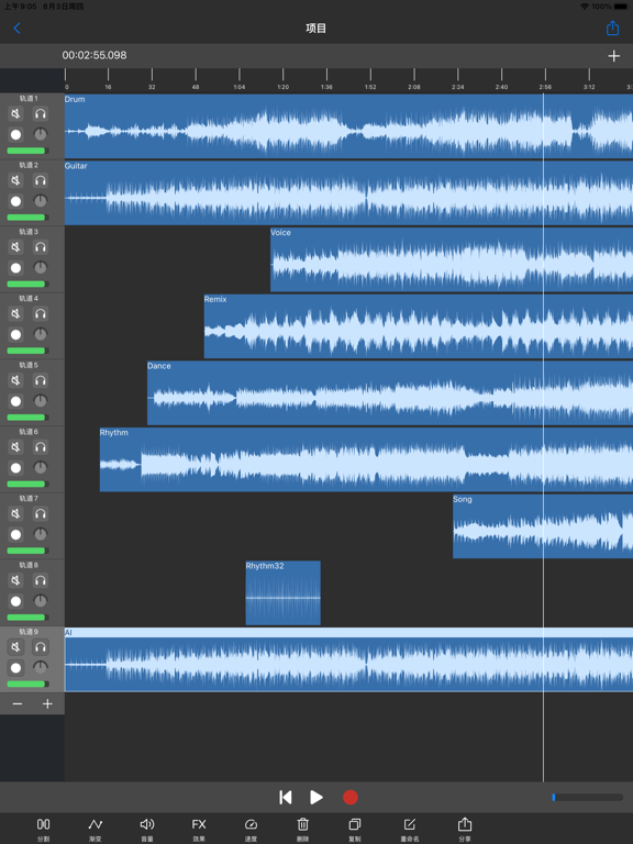 OKiMusic是一款功能强大的音乐编辑器。支持音乐裁剪、合并、混音,也可以制作手机铃声,转换音乐格式。 主要功能: · 多个音乐片段混合剪辑 · 实时录音 · 改变音乐风格,10段音乐均衡器 · 多种混响效果,支持音频延时 · 可以快速分割音频,合并音频,改变音频的速度和声调 · 支持音频自动化,给音频添加渐入和渐出效果 · 可以设置导出音频的比特率、采样率和声道 · 支持导出和转换多种格式的音频,如MP3,WAV,CAF,AIFF,M4V,M4R,FLAC,AAC,OGG,AMR,AC3,OPUS,WMA等修复已知问题。