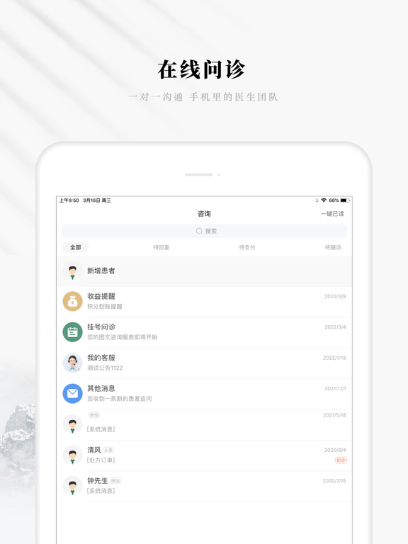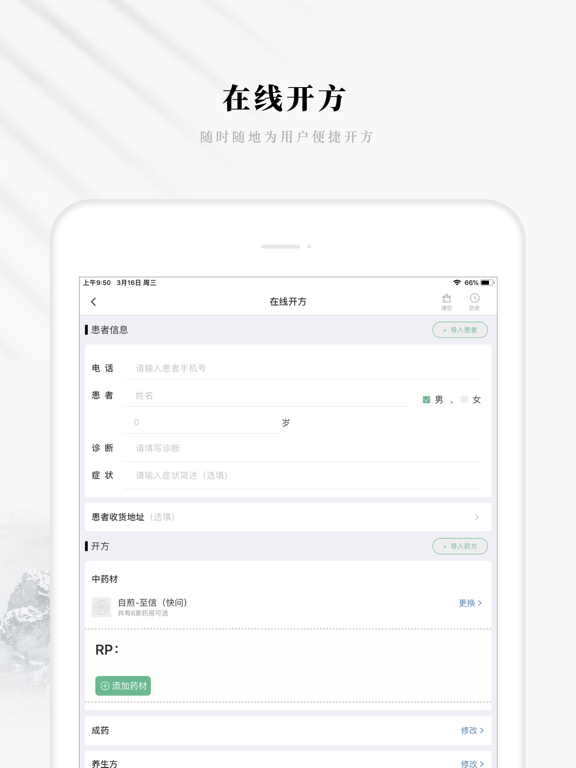 快问中医成立于2015年,总部位于广州。目前已超过15000位三甲医院名中医进驻,建立起了线上个人工作室。快问中医是一家专注为名中医服务并集传统中医医疗、传统中医教学和移动互联网问诊咨询为一体的综合平台。 进驻快问中医平台,您可以获得以下服务: 【复诊病人管理】在线管理您的病人,了解他们的治疗效果。 【患者中医问诊】让您随时随地都能给患者提供中医问诊服务,您还能模拟方剂模板,给患者开具健康调理方案,并由至信药业统一配药,通过快递送药上门。 【医生明星计划】快问倾力打造中医明星,助您建立个人品牌。 上快问,找名中医。 网址:https://www.kuaiwen.cn 客服电话:400-020-1199更新内容: 修复一些已知bug