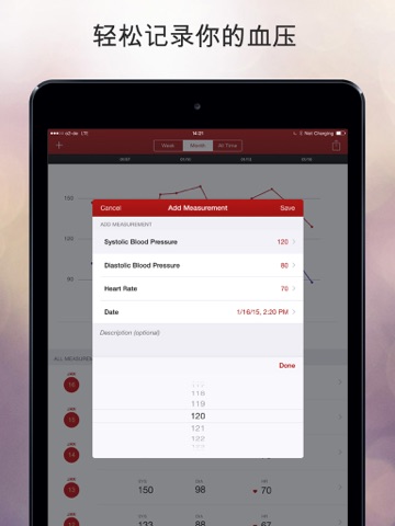 血压助手是进行血压测量追踪的巧妙方式。 无论身处何地,血压助手都可让你轻松输入和回忆血压测量。美观的图表让你追踪进行血压最近发展情况犹如玩儿童游戏。使用内置导出功能可让医生时时更新掌握你的血压发展状况。 全部特点包括: -直观用户界面 - 保存并管理血压数据 - 历次血压测量表 - 美观图表 - 通过电子邮件导出 - Apple Health Integration (iPhone only) Please note: Apple Health is currently only available for iPhone. Thus, synchronization of data between iPhone and iPad via Apple Health is currently not supported.Apple 已更新此 App 以显示 Apple Watch App 图标。 This update fixes a bug with chart display in landscape mode on iPhone X.