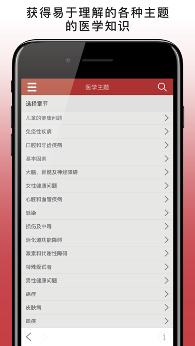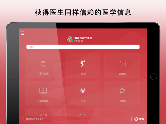 关于下载的特别说明 *** 下载此应用程序分为两个步骤:第一步是下载应用程序模板,第二步是完整下载应用程序内容。在使用 Wifi 上网的 64 位设备中,这可能需要 5 到 10 分钟时间。32 位设备可能需要更长的时间。请在两个步骤均完成后再离开此应用程序。*** 此版本的默沙东诊疗手册医疗信息应用程序专为患者、护理者和家庭开发,非常贴合您的需求。默沙东诊疗手册(大众版)应用程序采用日常语言编写,现在还提供许多新功能和增强功能。默沙东诊疗手册(大众版)为数以千计的医学病症提供了清晰、实用的解释,包括症状以及医生的诊断和治疗方法。 值得信赖的便携式默沙东诊疗手册(大众版)医疗信息应用程序提供: • 由超过 350 名医学专家定期撰写并定期更新健康和医疗信息 • 可按症状、诊断或治疗等搜索主题,全部内容均以通俗易懂的语言编写 • 数千种疾病和病症的照片和插图 • 视觉上展示疾病和治疗的动画 • 用于测试健康主题相关知识的交互式测验* • 用于检查您的健康和体质水平的自我评估* *需要连接互联网。 关于默沙东诊疗手册 我们的使命简单明了: 我们坚信,取得健康信息是人人都应享受的权利,并且人人都有权获得准确、易得和可用的医学信息。我们有责任保护、保存并分享当前最佳的医学信息,促成明智的决定,增进病人和专业医护人员之间的关系,改善全世界医疗保健成果。 因此,我们致力于用电子版形式免费向全球专业医护人员和病人提供默沙东诊疗手册。无需注册或订阅,也没有广告。 NOND-1179303-0001 04/16 有关更多信息,请阅读最终用户许可协议,网址: https://www.msd.com/policy/terms-of-use/home.html 有关我们的隐私惯例的更多信息,请参阅我们的隐私承诺,网址:https://www.msdprivacy.com 不良事件报告:如要报告特定默沙东产品的不良事件,请致电默沙东全国服务中心,电话 1-800-672-6372。美国以外的国家/地区可能设有特定的不良事件报告受理程序。请联系您当地的默沙东办事处或当地卫生当局获取更多信息。 如有问题或如需应用程序方面的帮助,请联系 msdmanualsinfo@msd.com更新了小錯誤修復