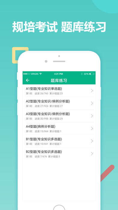 一站式解决主治医师考试刷题需求! 【题库内容】 卫生资格类:卫生职称,中级职称,初级职称,卫生中级职称,内科主治医师,外科主治医师,儿科主治医师,中医内科主治医师等卫生职称考试。 【题库数据分析】 卫生准题库可以根据十几万用户的答题情况,分析出高频考点和高频易错点,也能为你提供精准的能力评估报告,精准分析考点掌握情况。卫生职称准题库是一款你通向医生职业生涯的一款必备宝典,考试宝典,通关宝典。 【题库适用地区】 本题库内容适用于全国各个省市考试地区包括:北京、上海、天津、重庆、黑龙江、吉林、辽宁、河北、河南、湖北、湖南、广东、福建、江苏、浙江、江西、安徽、山东、山西、甘肃、陕西、青海、四川、云南、贵州、海南、台湾、宁夏、新疆、西藏、广西、内蒙古等地区。1.APP全新升级 2.题库全新升级
