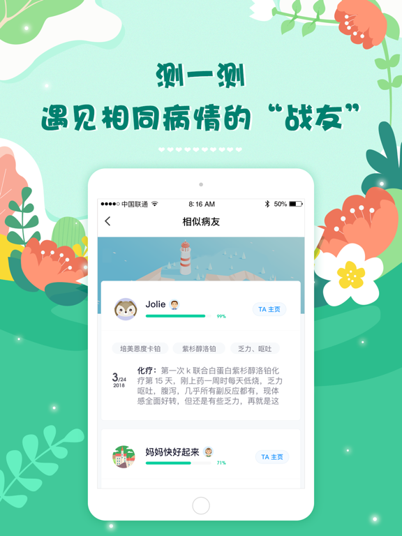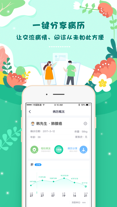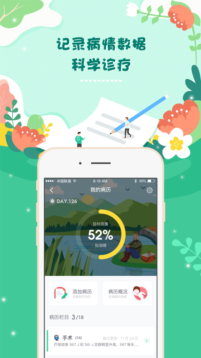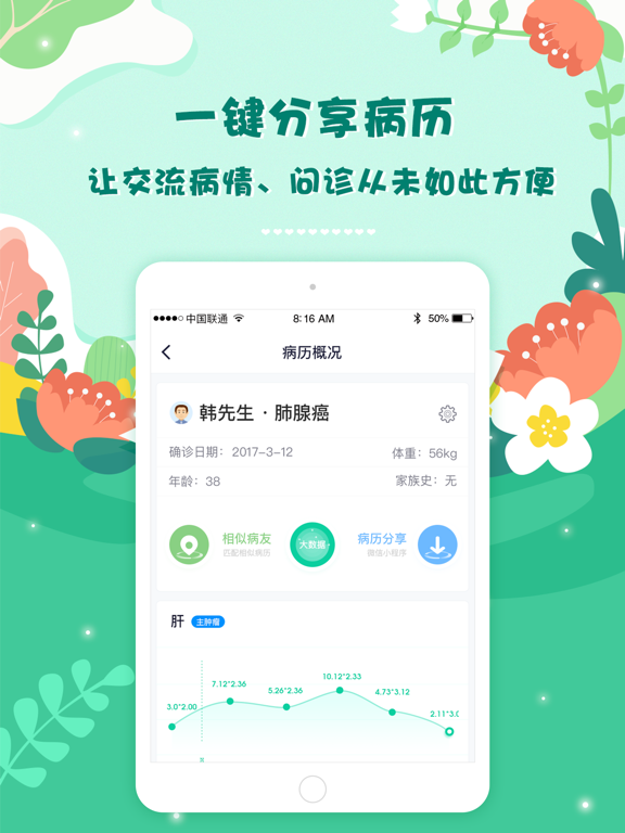 「咚咚智能病历APP」——免费的云在线电子病历工具、动态记录肿瘤治疗日志、智能检索肿瘤文献资讯、寻找类似病情患者一起学习,一起治愈。 抗癌之路有太多的难题: ·药物的副作用、有效率、生存期临床数据怎么样? ·放化疗、免疫治疗、治疗前后应该注意什么? ·晚期病人如何“自救”? 这些难题,「咚咚智能病历」也许能找到非答案~~ 基于智能系统与云存储服务,帮你一键分享病历信息,让主治医生及时掌握患者症状,做到提前干预,早诊早治让治疗效果最大化!找到同病相怜战友陪你一同“战斗”少走弯路! 【记录病情数据、科学诊疗】不管你想记录手术、放疗、化疗,还是基因检测报告只需要点化操作,系统将为你生成一份完整的记录数据。 【测一测,遇见相同病情的“战友”】比起其他APP单一的记录功能,咚咚病历系统还添加了寻找相似病友功能,了解他用了什么方案,效果怎么样?有什么副作用,通过他的病历数据起到借鉴作用。 【智能匹配,相关病情文献资讯】只要病历足够完整,咚咚病历系统会在出现“文献资讯”功能,你将能查阅国内外相同治疗方案的资讯文章。 【了解真实世界、有效率与副作用数据】大数据让你清晰可见,真实世界用药的情况。 【一键分享 】通过小程序一键分享病历,让交流病情、问诊从未如此方便。 小伙伴如何评价咚咚智能病历 : 1、终于可以摆脱应用市场哪些超级难用的电子病历APP了。——抗癌小白 2、因为好用所以让我有持续完善病历的动力,完善的病历让每个抗癌节点选择治疗方式上更能运筹帷幄。——癌症对抗赛 3、找到了类似病情的患者,心理的苦只有战友才懂,对于肿瘤晚期患者心灵的慰藉也许比治疗更加重要。——妈妈会好 如有需要请联系: 微信公众号:咚咚癌友圈 客服电话:0755-23358783 使用咚咚智能病历,科学抗癌![优化] 病历概况页面Ui修改 [优化] 病历数据进行分类展示 修复已知bug,增强系统稳定性和流畅度