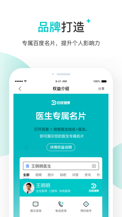 百度健康医生版是百度旗下专为医生提供服务的在线工作平台,依托于百度集团流量、技术、资源优势,全面提升医生个人品牌影响力,开启线上执业新方式,为更多患者提供专业服务。 「专属权益」 百度健康亿级流量扶持,百家号、百度百科、直播等百度平台支撑,多种医生专属权益,全面助力医生打造个人品牌 「问诊、处方」 接诊、咨询、医嘱、患者管理等一体化的线上诊室服务,提高医生接诊效率 「患者管理」 医生可以对线上咨询和线下报到的患者进行分组管理,通过患教资料、问诊表等专业工具高效随访跟踪诊后患者病情,助力医生诊后管理1、新增图片快捷生成数字人形象创建能力 2、新增支持选题推荐不准和选题退领反馈