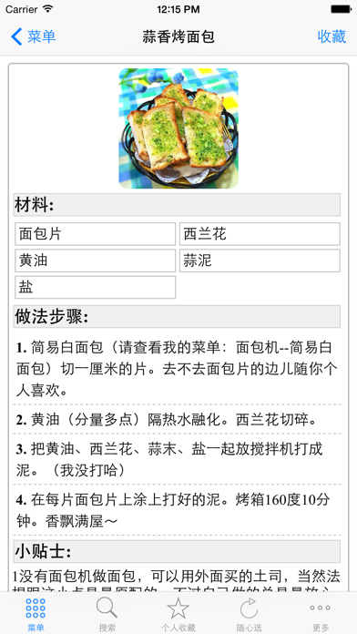 原生iOS 7界面,完美适配。最简洁清新的早餐食谱大全,离线数据,全设备通用。一键收藏,摇一摇随机选择菜谱,支持全文搜索。 ◆丰富的离线数据包,一次下载,无后续流量费用 ◆菜谱资料详实,步骤清晰 ◆一键收藏,随时查看,支持手势滑动切换 ◆全文搜索,键入食材、做法即刻查找相关菜谱适配iPad横竖屏 自动适应深色模式