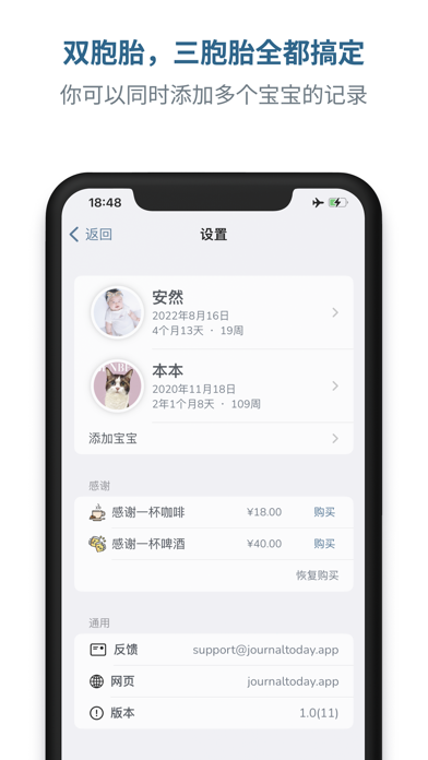 喂奶记录帮助你记录宝宝的喂奶,睡觉,换尿布和吸奶 完整的数据统计和图标帮你记录宝宝的成长 不管是给双胞胎甚至三胞胎记录,喂奶记录都能解决 与你的伴侣家人朋友共享宝宝的记录数据 iPhone, iPad 和 macOS 我们全都支持 免费使用,没有广告 享受喂养吧! 隐私政策: https://journaltoday.app/burpprivacy 服务条款: https://journaltoday.app/burptermsBug Fixes and Performance Improvements