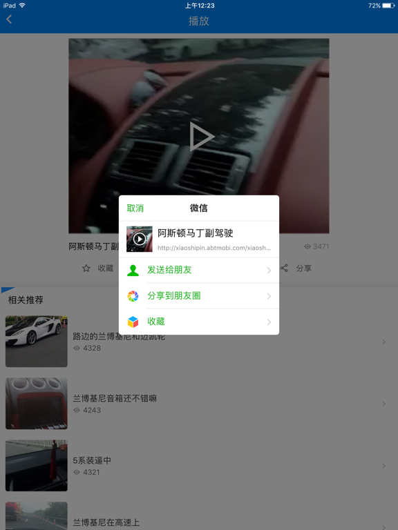 朋友圈小视频转发软件为大家收集了700部最酷,搞笑,吸粉,小视频的资源,各类豪车、明星、炫生活的小视频,再次刷新你朋友圈的三观,吸引你所有朋友的目光! 包括: 白天炫跑车 各种炫生活 海边 美食 明星 晚上炫跑车 晚上装逼 炫money 炫船 炫单 炫飞机 炫风景 炫美女Apple 已更新此 App 以显示 Apple Watch App 图标。