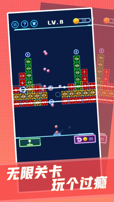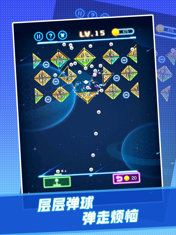 弹球弹不停是一款趣味十足的弹射打砖块玩法,分为关卡模式和无尽模式两种,充分满足挑战和休闲两种类型玩家的需求。操作简单,但实际上玩起来却趣味盎然,活力十足~ 界面简单易懂,内部功能清晰明确,并设有引导功能,确保玩家首次进入就能迅速上手。玩家进入首页后可以根据自己的喜好选择不同的模式。 玩家只需要左右滑动屏幕控制弹球的发射方向,使弹球能更多的击打到砖块,消灭的砖块越多,得分越高。 简单的操作,无穷的乐趣,来和我们一起弹弹弹吧~- 修复已知bug