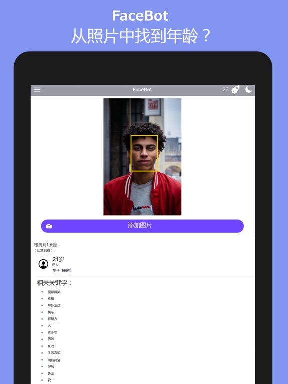 当前位置:首页苹果软件娱乐 → 人脸年龄识别 - 年龄测试 - 心理年龄测试