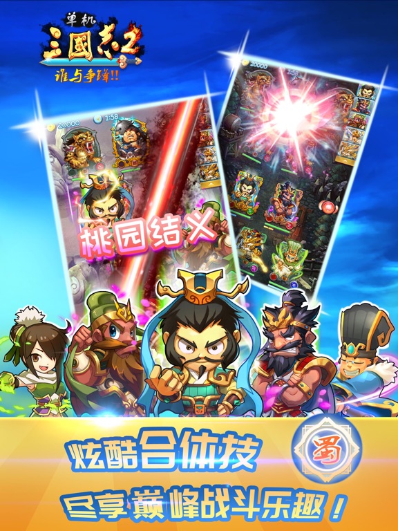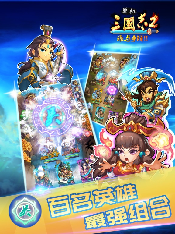 游戏特色: 1)技能组合,蓄力技能,技能打断,策略玩法大升级! 千种技能组合搭配,前排后排,左中右排站位,多变的玩法,操作和策略。 2)合体技! 痛快淋漓的合体技系统,简单刺激的触发方式,给您前所未有的战斗体验。 3)六大职业系统! 六大职业,六大天赋,职业定位更加明确,玩法更加多变。 4)三大模式! 故事,自由,挑战三大经典模式,等您来战。 5)三线剧情! 全新的角色造型配合全新的剧情,给您不一样的三国故事体验。 ※ 注意:如删除该应用时,游戏内的所有数据也会随之被删除,且不能恢复,请注意! ※ 如有任何问题和建议,可到新浪微博或百度贴吧联系我们,我们一定尽快给您答复!祝您游戏愉快! QQ交流群1:118323089 QQ交流群2:282400855 QQ交流群3:203399926 QQ交流群4:472583854 QQ交流群5:758352295 微信公众账号:oneonegames 百度贴吧:单机三国志-优化部分美术资源。 -提升了部分专属的掉落几率
